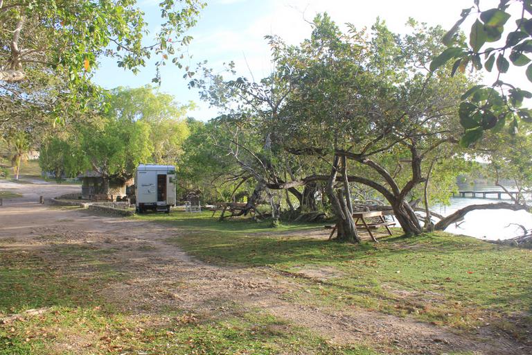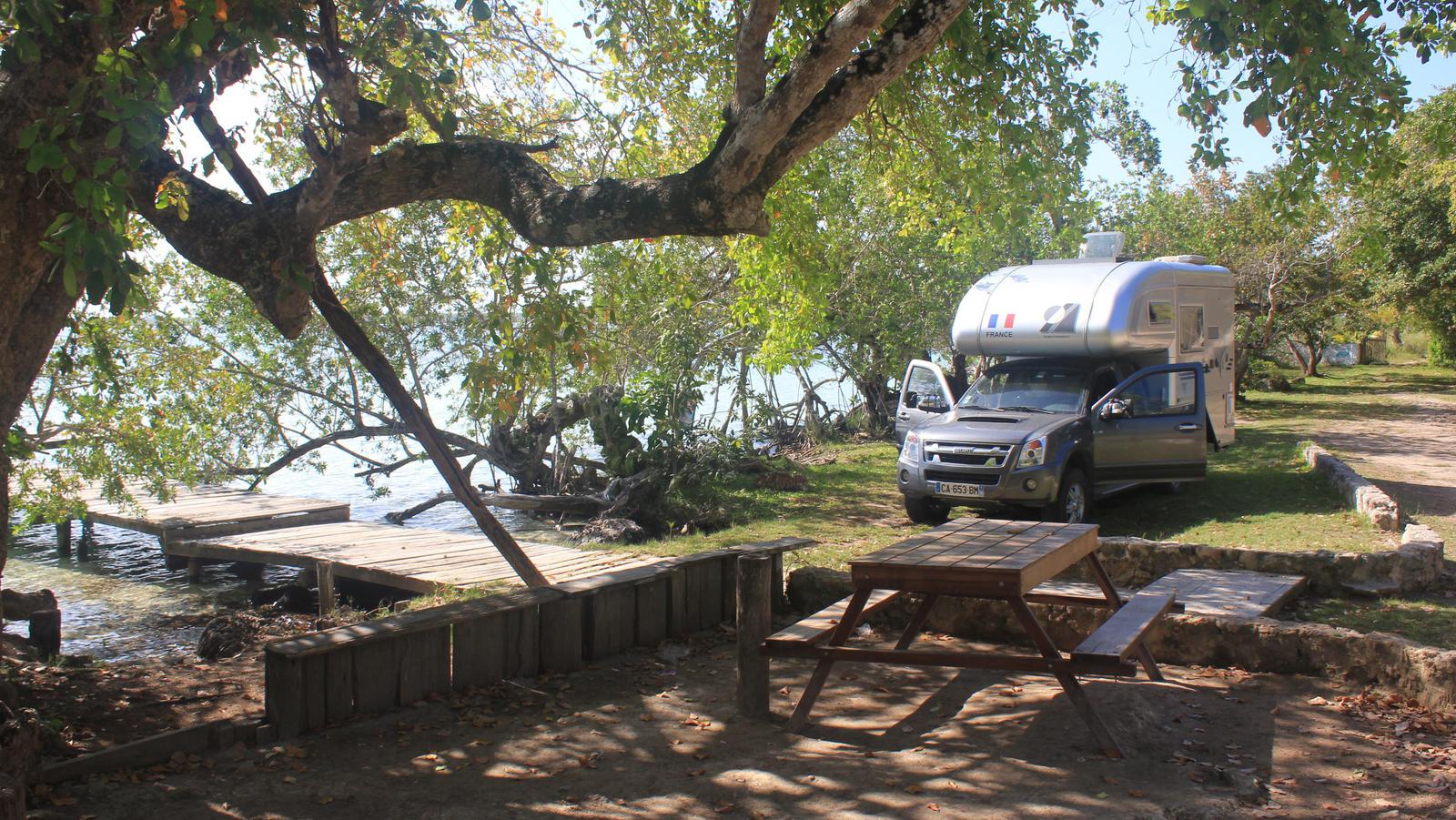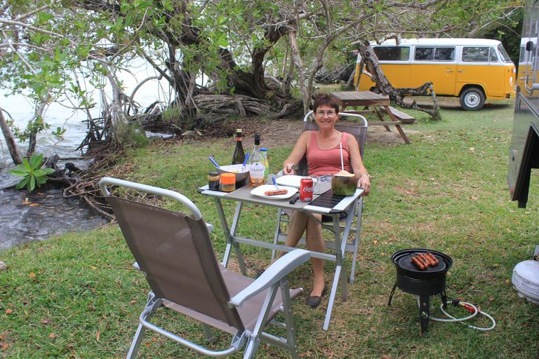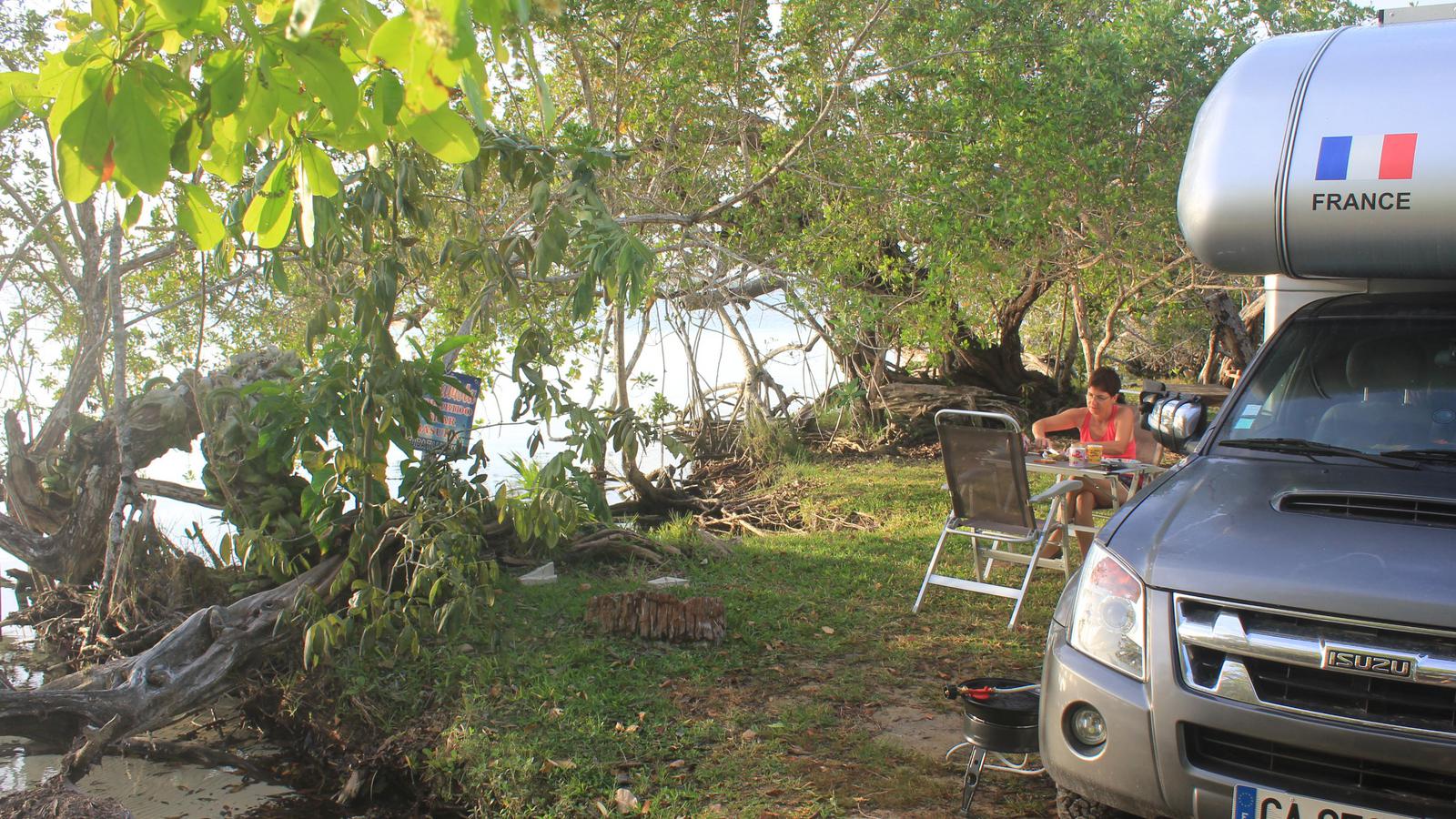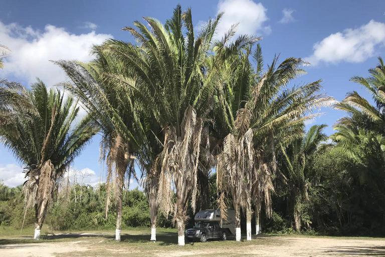 Ce camping est certainement le plus beau du voyage et notre emplacement au bord de l'eau sous les palmiers est extraordinaire.