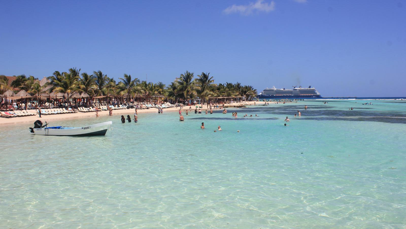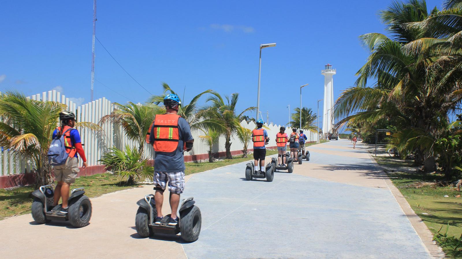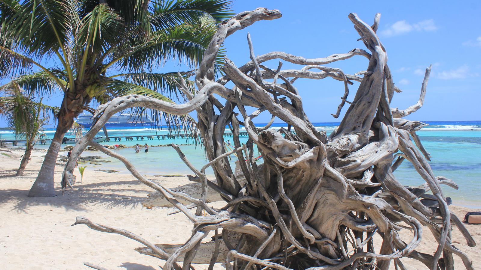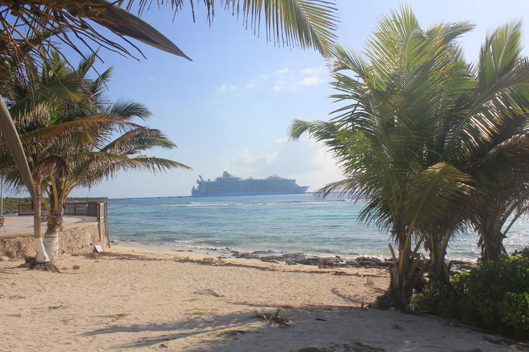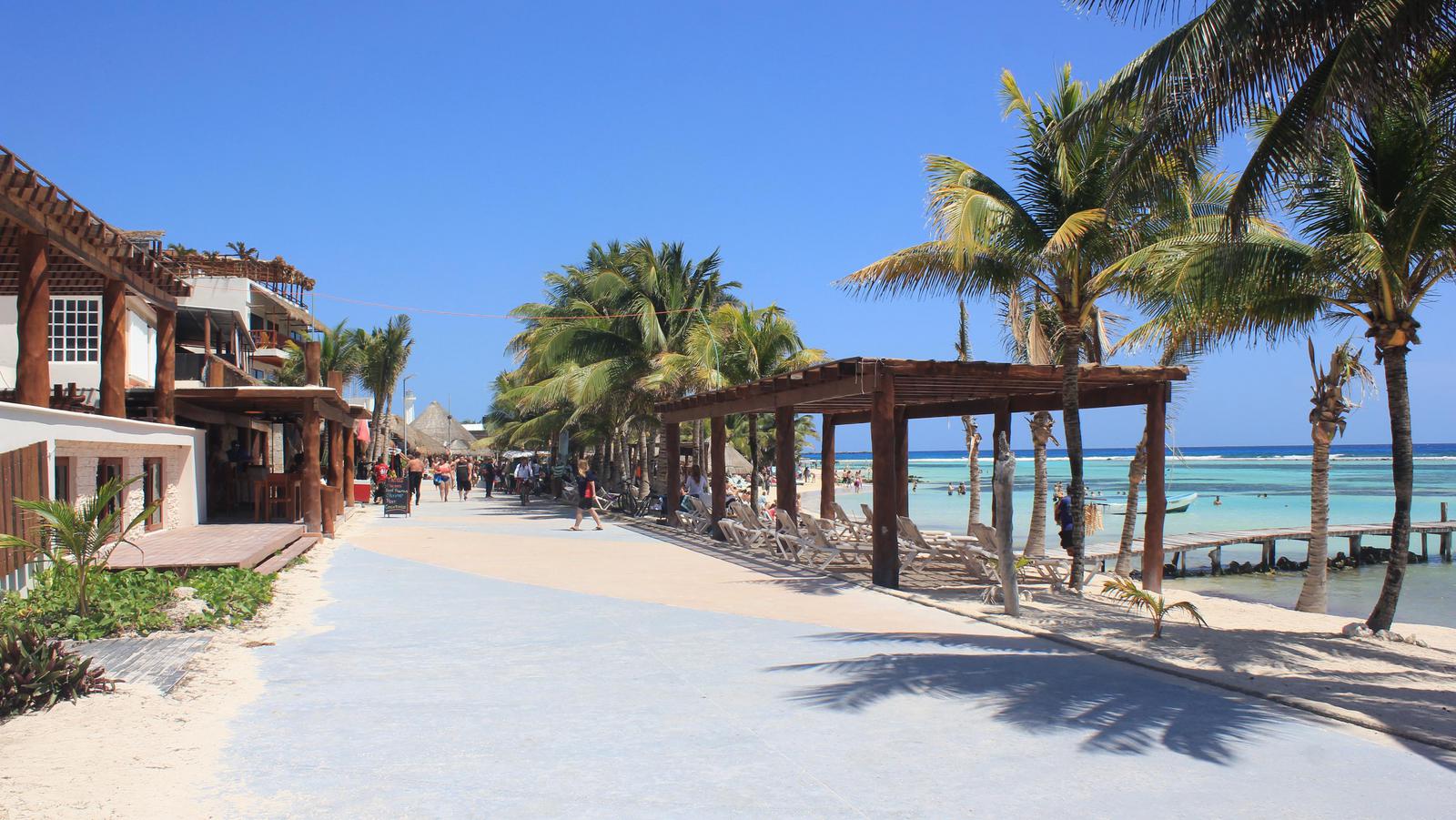Le village vit au rythme des escales de bateaux de croisière. Il est midi, les touristes ont envahi le malecom, à pied, en voiturette de golf ou en segway. Nous allons, à notre tour, faire une reconnaissance de Mahahual, la rue piétonne du bord de mer est agréable et les plages extraordinaires...