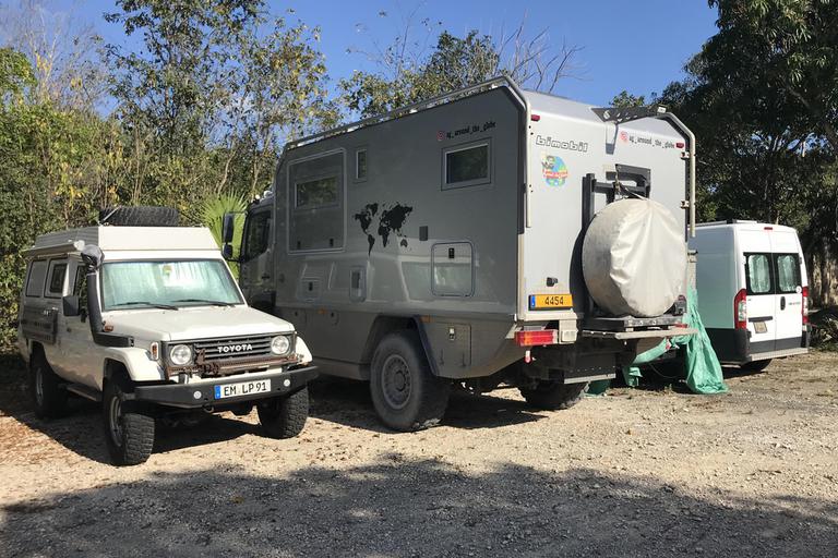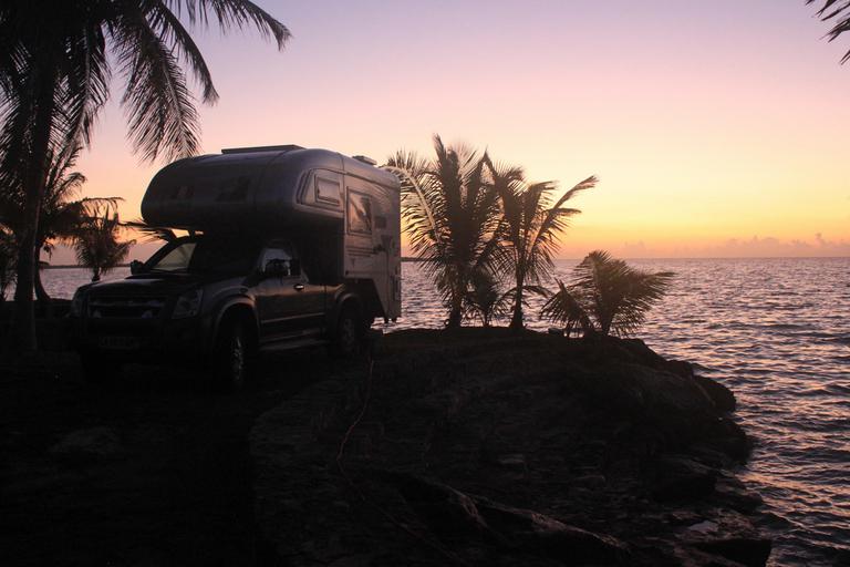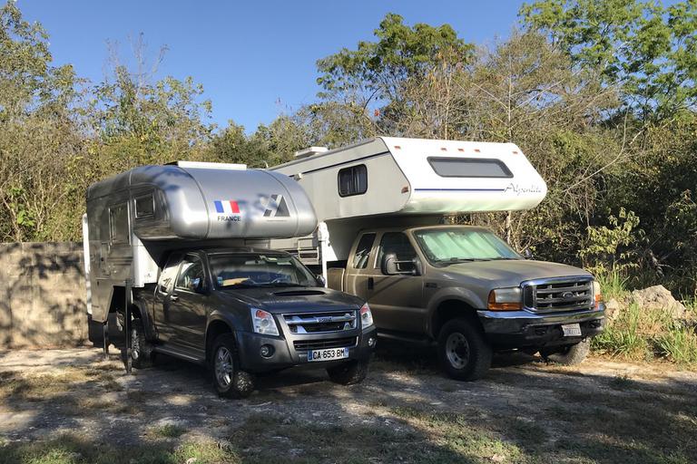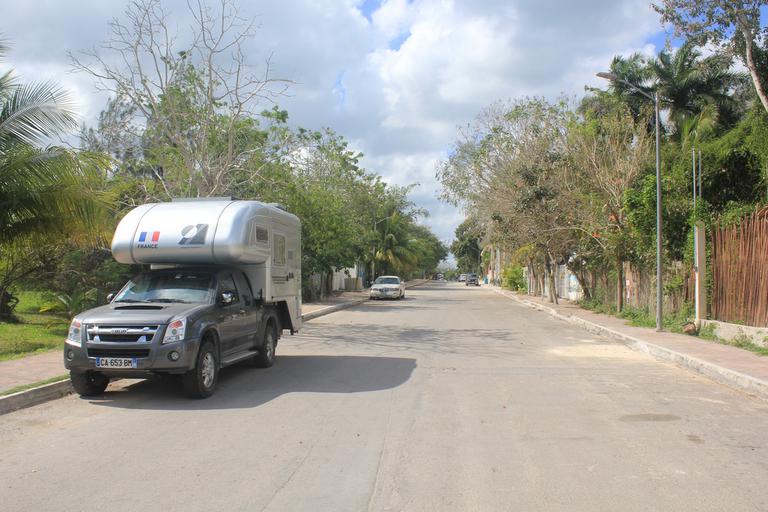 Un jeune couple français nous rejoint dans la soirée, Antoine et Loreen, avec une cellule et un pick-up qu'ils ont achetés aux USA. Ils s'apprètent à rentrer en France et reviennent de Chetumal où ils ont fait annuler l'importation de leur véhicule à la frontière du Belize afin de récupérer leur caution. Chose importante à savoir, au Quintana Roo comme en Basse-Californie, celle-ci n'est pas nécessaire pour circuler.