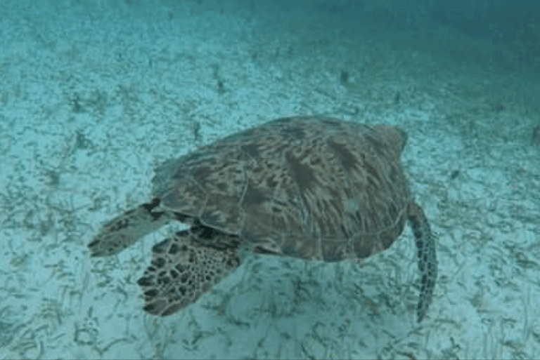 Les coraux sont moins présents que lors de notre précédente sortie, en revanche les tortues sont bien au rendez-vous et nous avons la chance d'en cotoyer trois successivement.