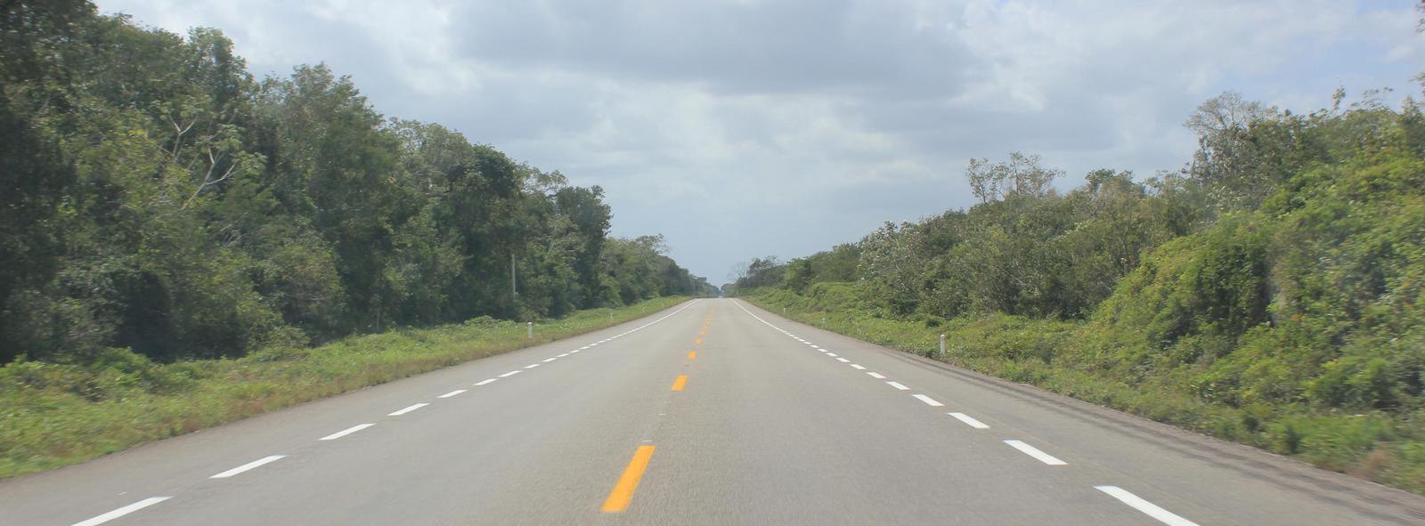 La route entre la 307 et Mahahual fait une soixantaine de kilomètres. Elle traverse une zone marécageuse où se mèlent jungle et mangrove. Le trajet est une nouvelle fois long et monotone.