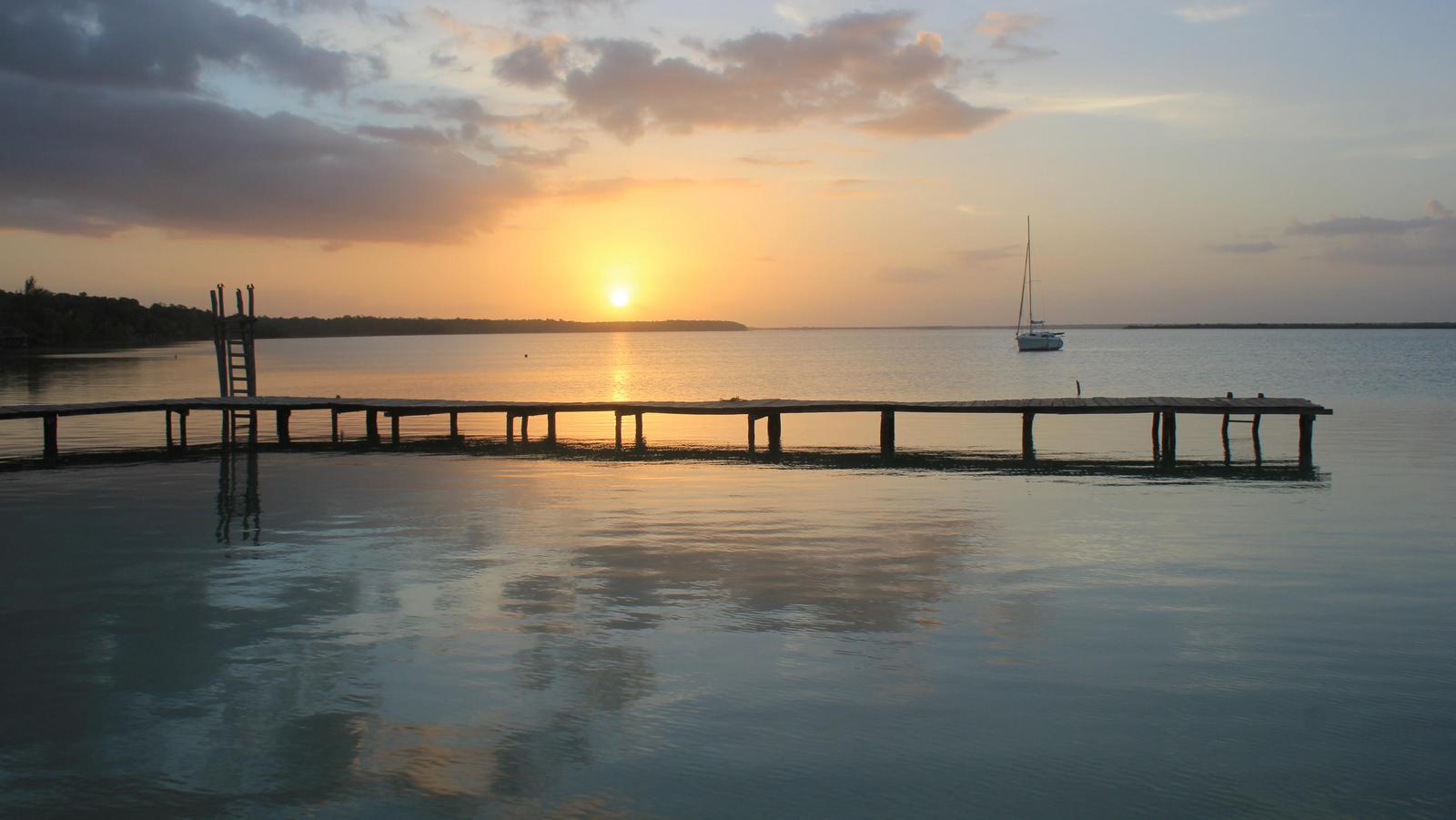 Nous quittons Buenavista et la lagune sous un magnifique ciel bleu. Nous revenons un peu sur nos pas et prenons la direction de Mahahual, un petit village au bord de la mer Caraïbe, face au récif corallien de Banco Chinchorro.