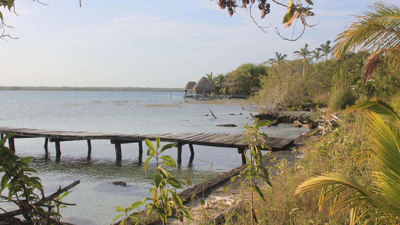 Nous contournons Felipe Carrillo par une partie d'autoroute payante, et quittons enfin la route 307 pour rejoindre la balneario Ejidal Buenavista, une plage aménagée à l'extrémité nord de la lagune de Bacalar, pourvue d'une petite zone de camping.