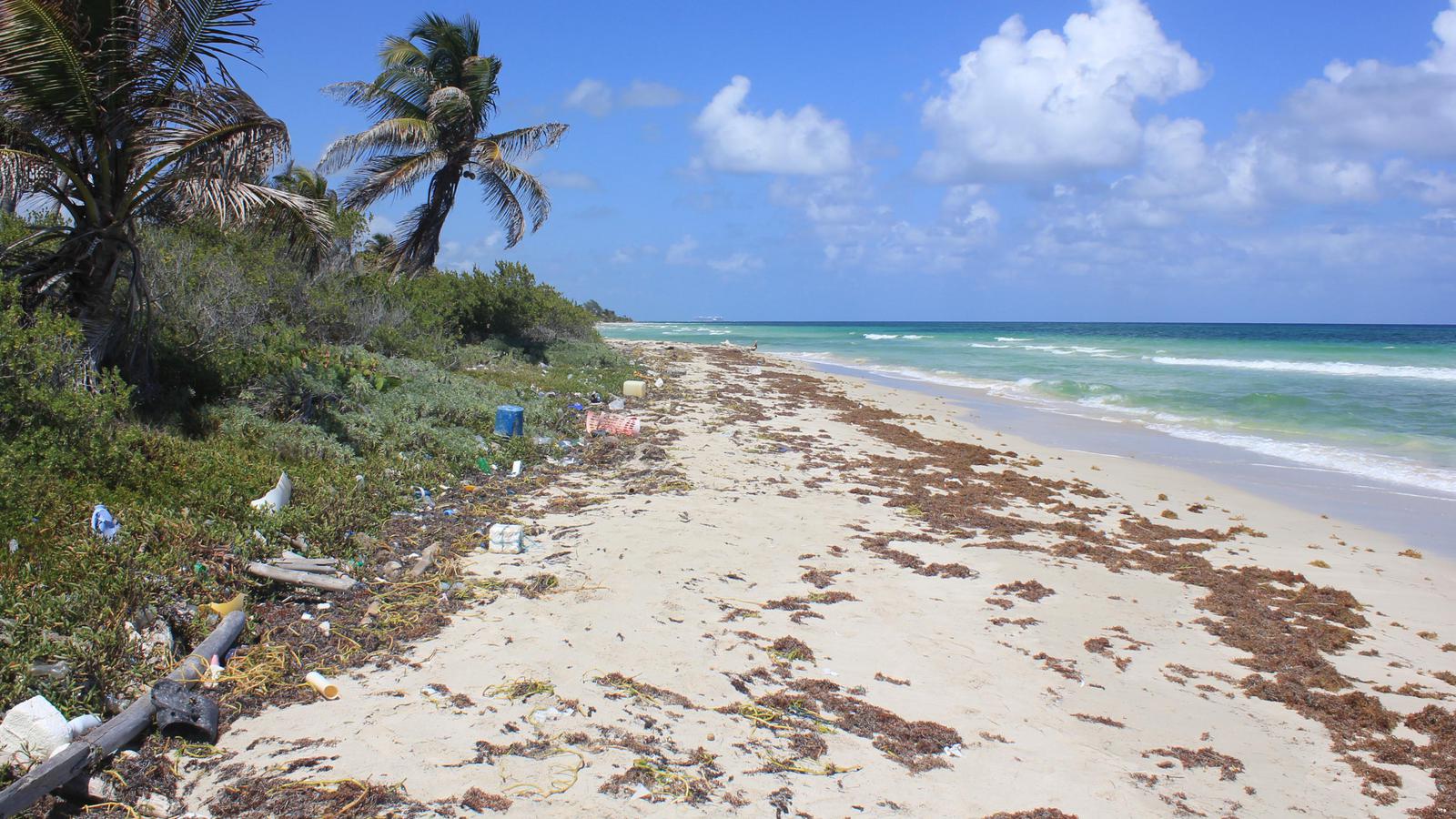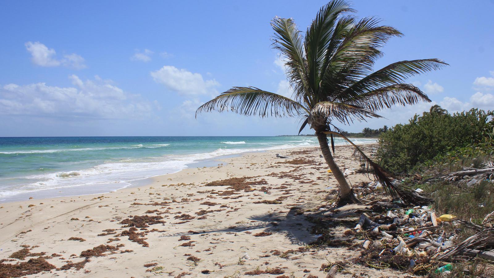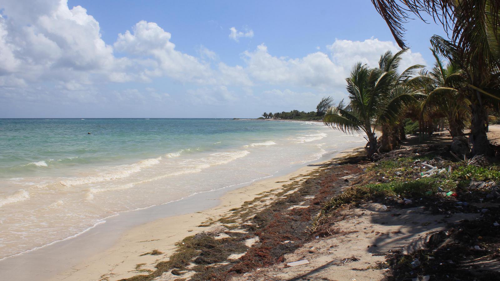 Nous partons ensuite en direction de Xcalak, l'extrémité de la péninsule. La route longe la mer que nous apercevons de temps à autre entre les propriétés privées. La végétation est très belle, le sable blanc et la mer d'une couleur incroyable. En revanche sitôt que nous avons dépassé les plages accueillant les touristes, c'est un véritable dépotoir de plastique, bouteilles d'eau et de coca, de chaises cassées, de Crocs et sandales, d'emballages et de bidons de toutes sortes, rejetés sans fin par la mer...