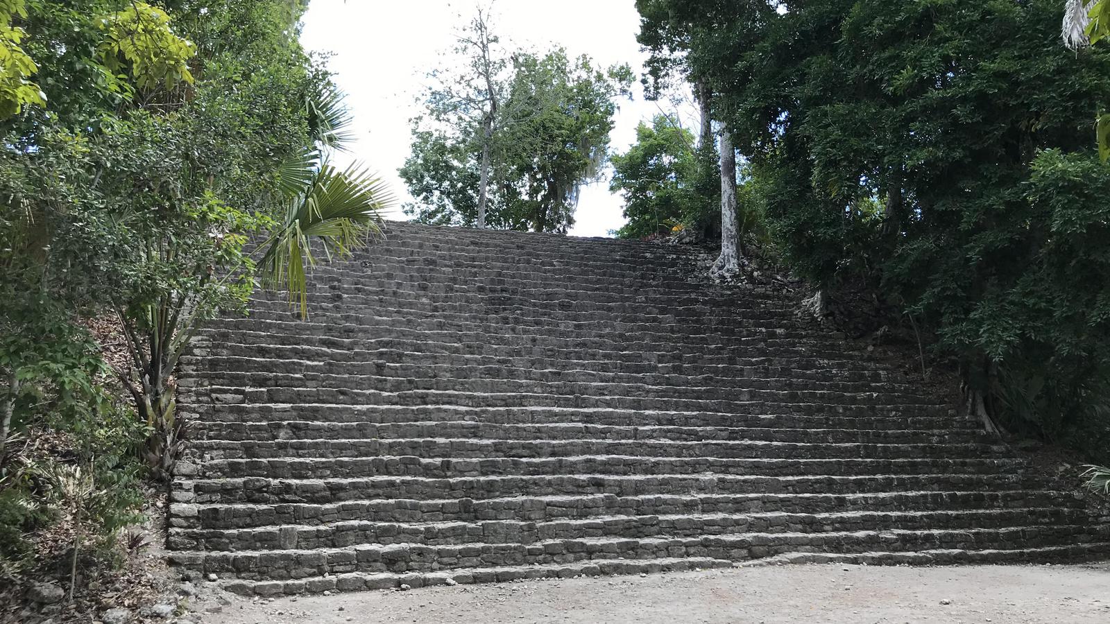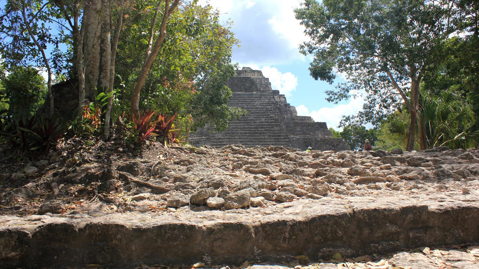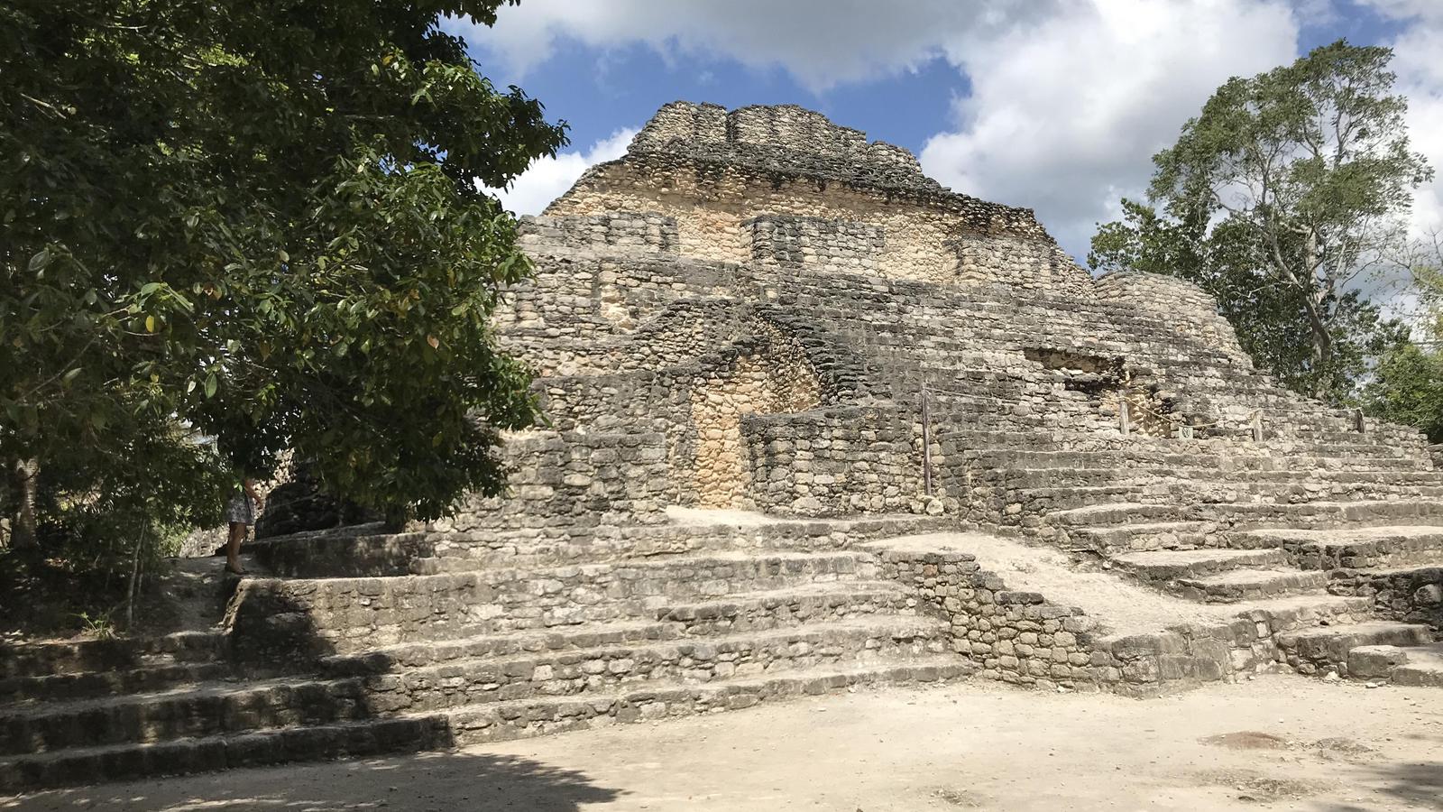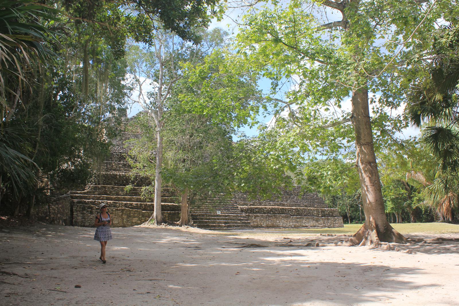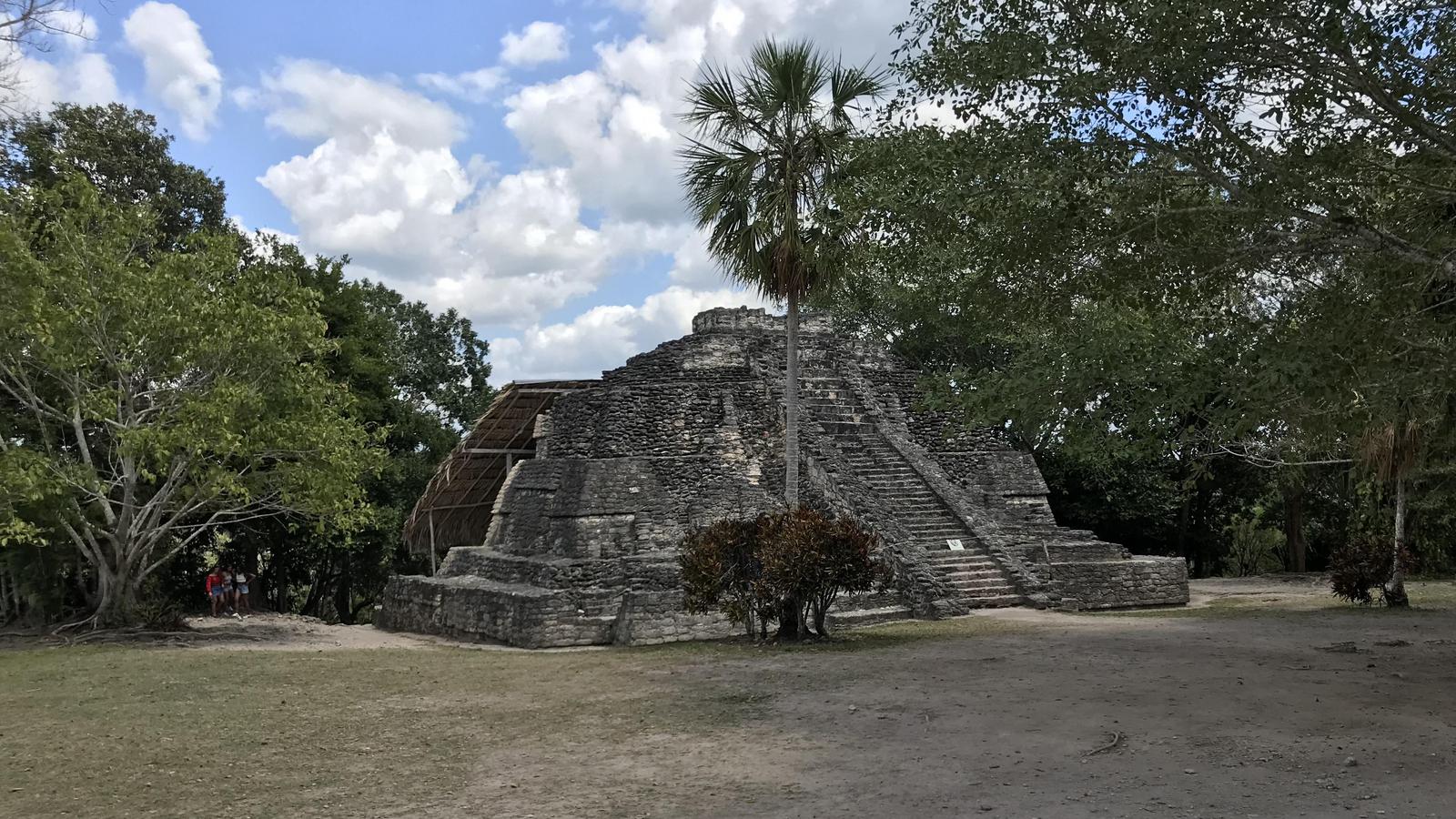 L'excursion en bus à Chacchoben fait partie des sorties proposées aux passagers des paquebots en escale à Mahuhual. Néanmoins, il n'y a que peu de groupes et nous arrivons aisément à visiter ce site à l'écart de ceux-ci.