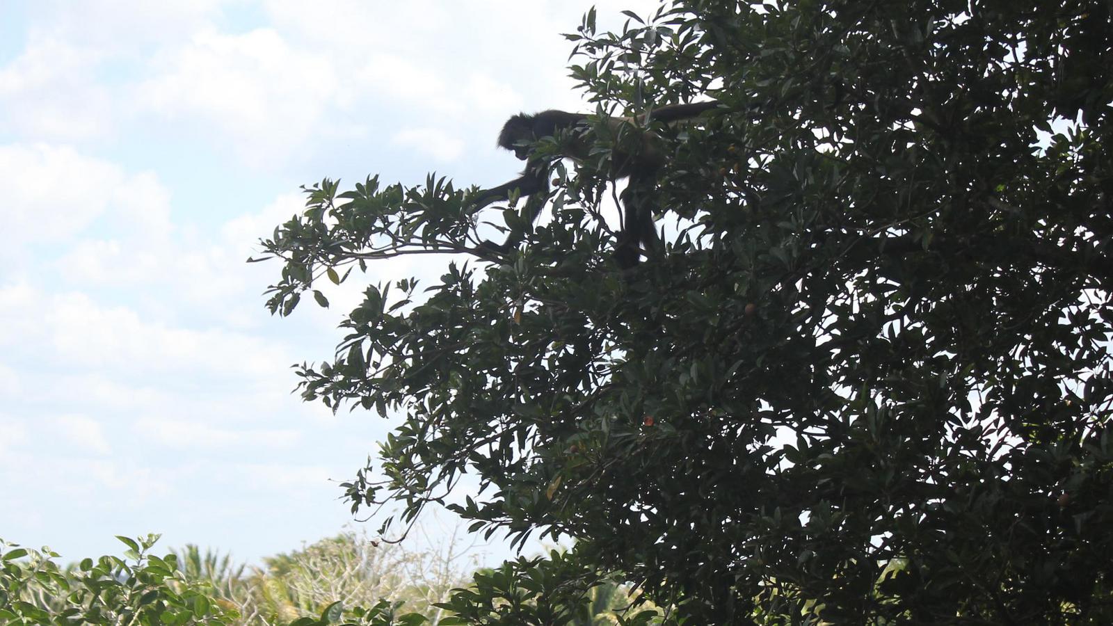 Nous découvrons trois très belles pyramides, mais c'est bien la végétation qui est la plus remarquable ici. Nous y apercevons également nos premiers singes-araignées volant de branche en branche...