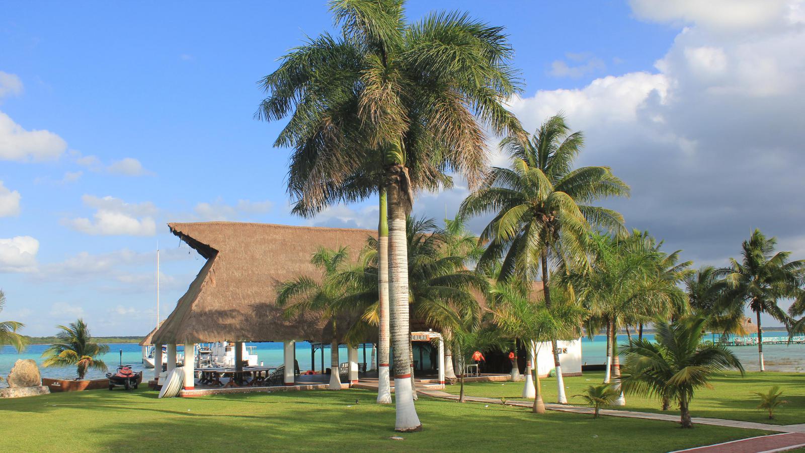 Nous déjeunons à l'ombre des palmiers, puis partons pour Bacalar.