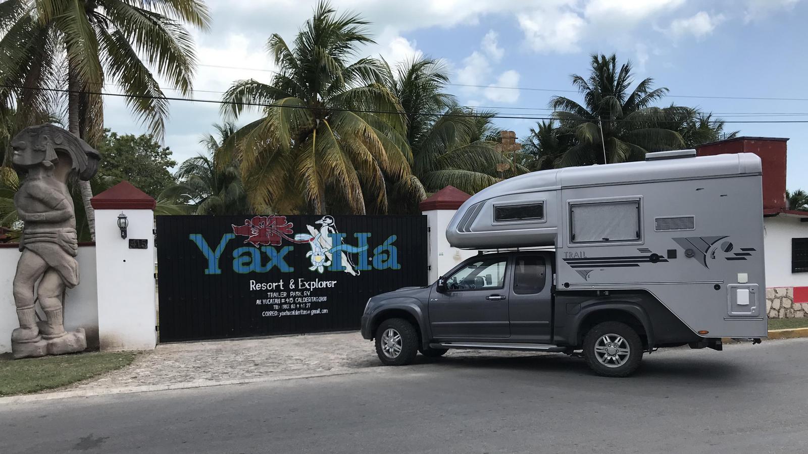 Nous effectuons quelques courses au Walmart, rien ne semble anormal, puis roulons jusqu'au camping Yax Ha à Calderitas.