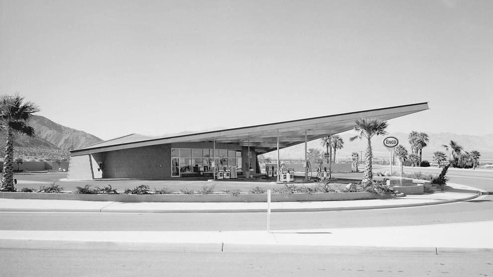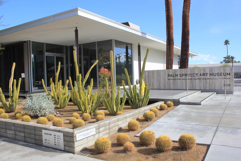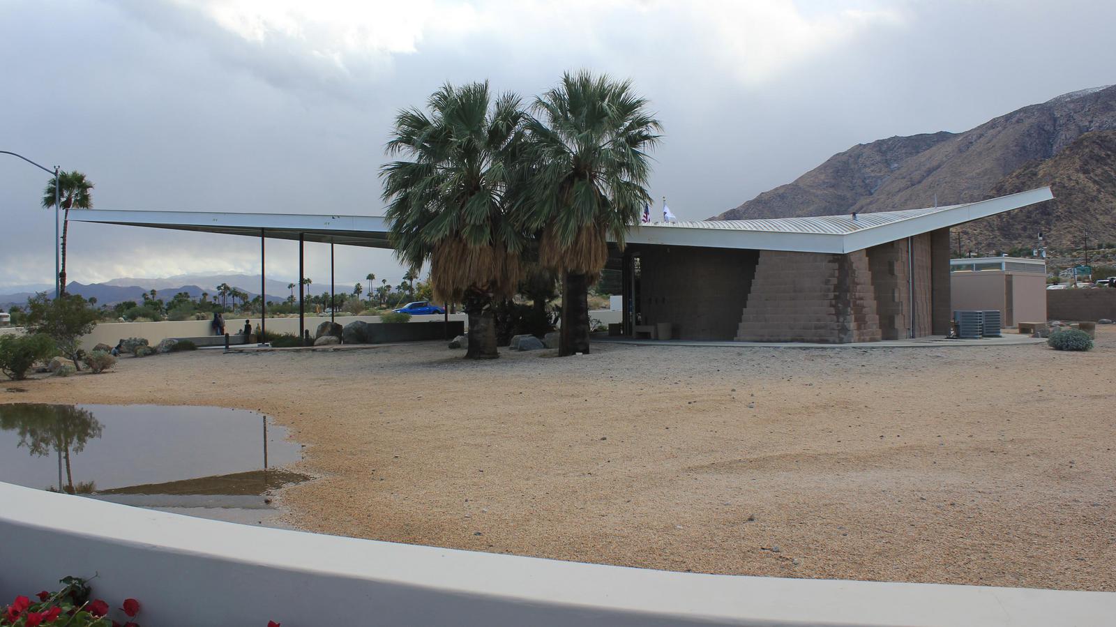 Celui-ci est installé dans une ancienne station service à l'entrée de la ville en venant de Los Angeles. Ce bâtiment avec un auvent démesuré date de 1965, il est emblématique du mouvement architectural appelé Desert Modernism. Son concepteur, Albert Frey, était né en Suisse et avait travaillé avec le Corbusier avant de venir s'installer en Californie. Au milieu des années cinquante, les plus grandes stars, Elvis et Marilyn Monroe en tête, viennent à Palm Springs et se font construire des villas par les plus grands architectes de l'époque.