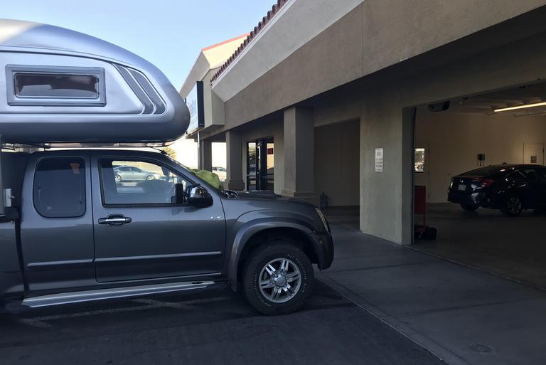 Magic Las Vegas ! Une nouvelle fois la barrière du parking se lève devant notre capot sans que nous ayons besoin de mettre notre ticket. Nous disons au revoir au Strip et prenons la direction du réparateur de parebrise que nous avons trouvé sur East Sunset Road. L'éclat n'est pas important mais il faut absolument le neutraliser avant que la vitre fissure car il ne serait pas simple de la faire remplacer par ici. Nous faisions très attention sur les pistes et c'est sur l'autoroute que nous avons reçu ce gravillon...