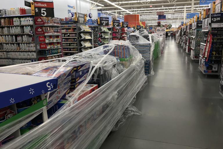 Les magasins Walmart, eux, restent ouverts. Nous partons faire quelques courses, histoire de recharger notre batterie bien peu alimentée ces temps-ci par le panneau solaire.