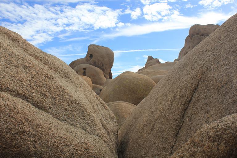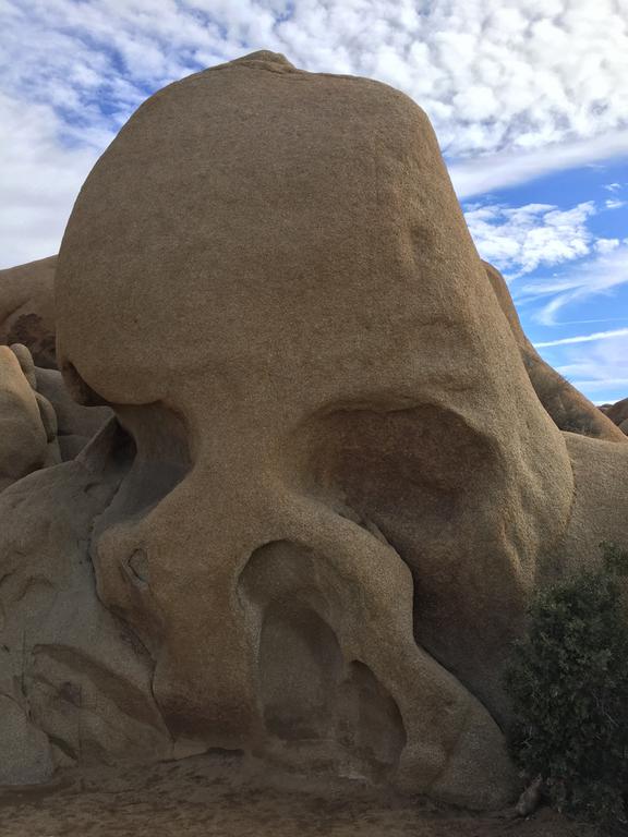 Nous reprenons la route et faisons une halte à Skull Rock, le temps d'une très courte balade qui nous mène devant un affreux rocher en forme de crâne humain...