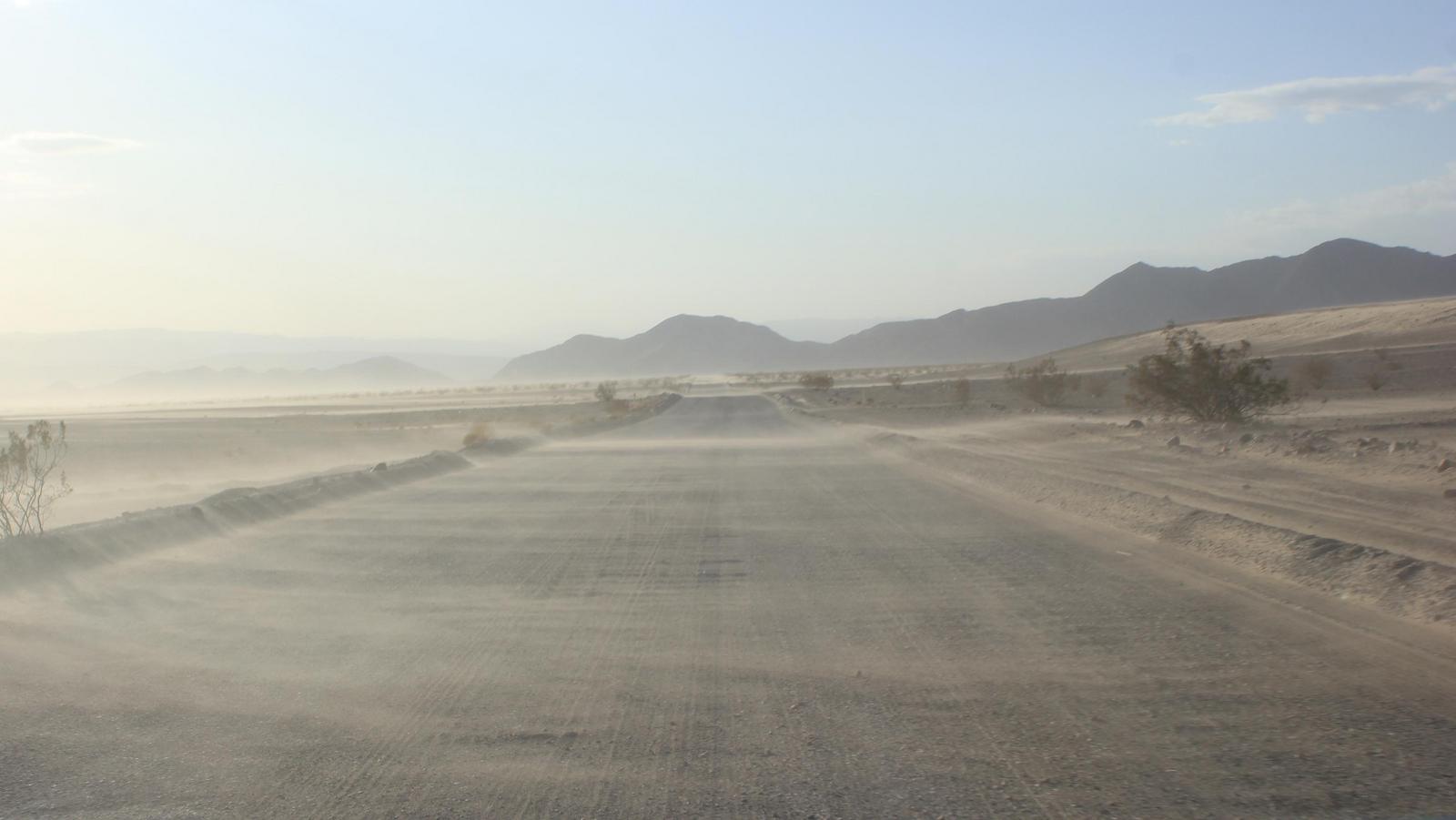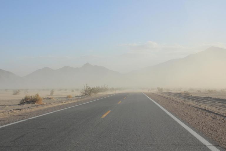 Nous reprenons la route, tout à coup le téléphone d'Isa émet un signal strident, nous venons de recevoir une alerte d'urgence émise par le gouvernement de Californie, nous allons subir une tempète de poussière...