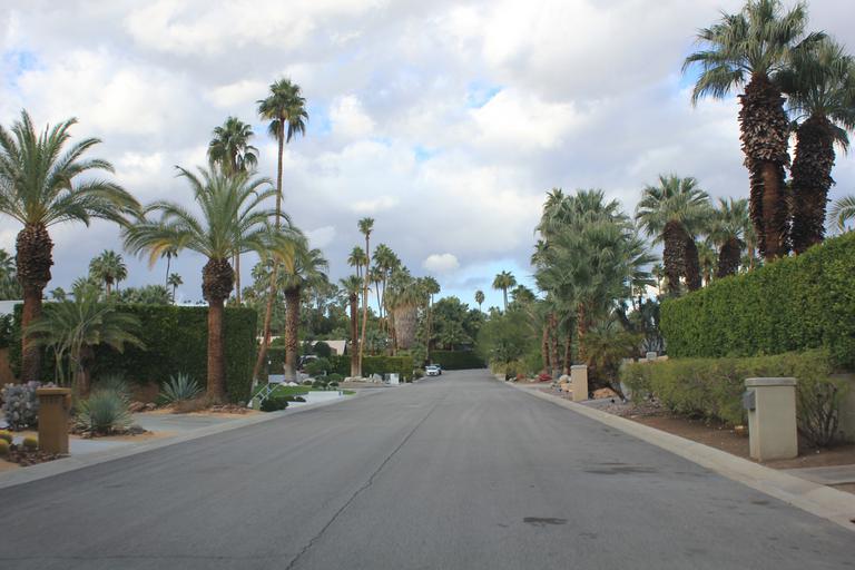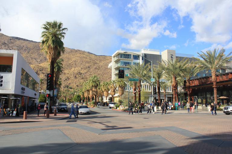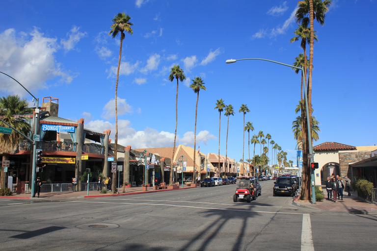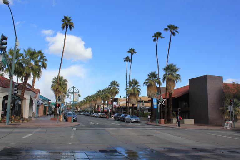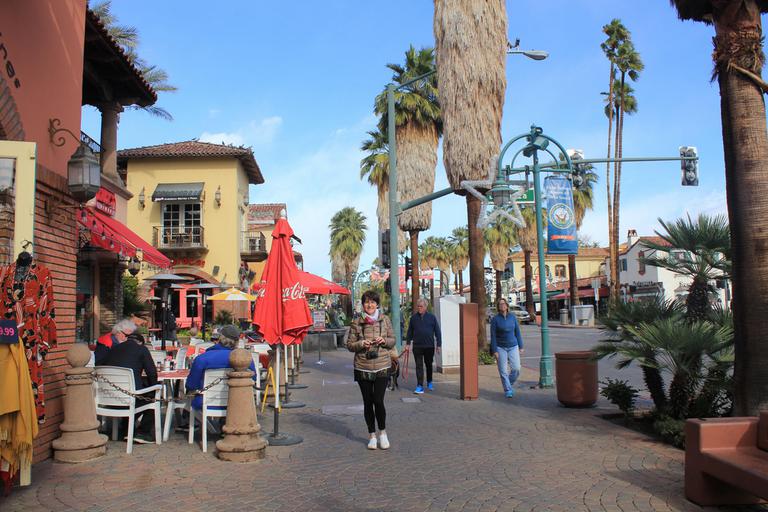 Nous parcourons les deux rues commerçantes de la ville, Palm Canyon Drive et Indian Canyon Drive. Comme à Los Angeles sa grande voisine, des étoiles ont été incrustées dans les trottoirs pour célébrer les stars à l'ombre des palmiers géants. Avec les premiers rayons du soleil, la température frôle les 15°C, ce qui n'empêche pas les passants d'être équipés comme s'il étaient à Courchevel, avec gants, écharpe et bonnet...