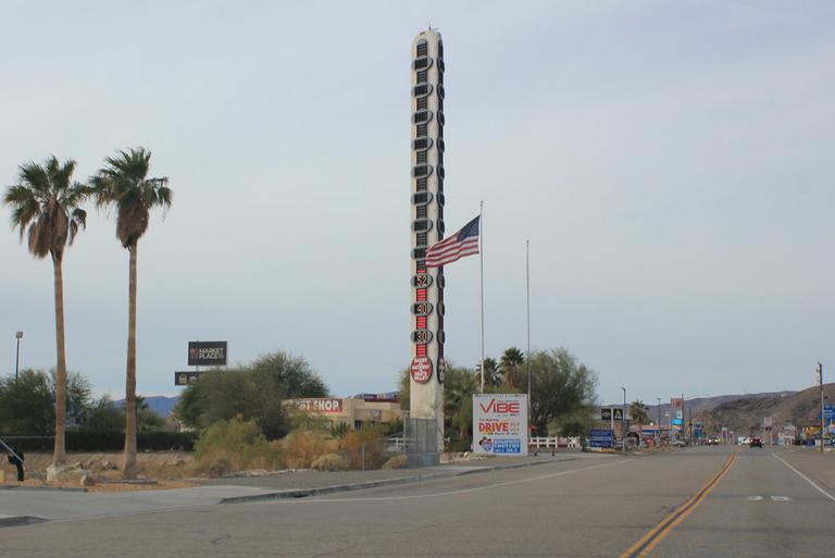 Pour l'anecdote et selon le GDR, Baker possède le plus grand thermomètre au monde. Haut de 41m il commémore le record de 1913 où la température atteignit 57°C dans la Death Valley. Pas de reccord en vue pour aujourd'hui, il affiche 52°F, soit 11 degrés celsius...