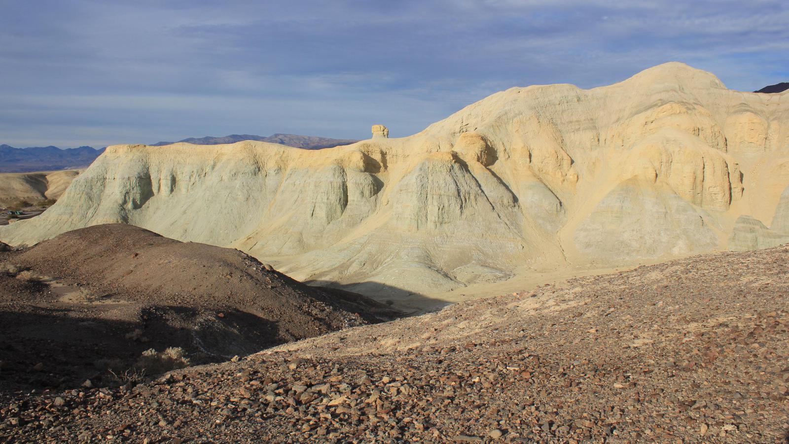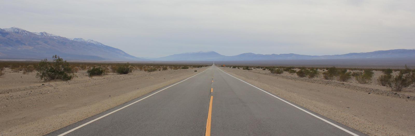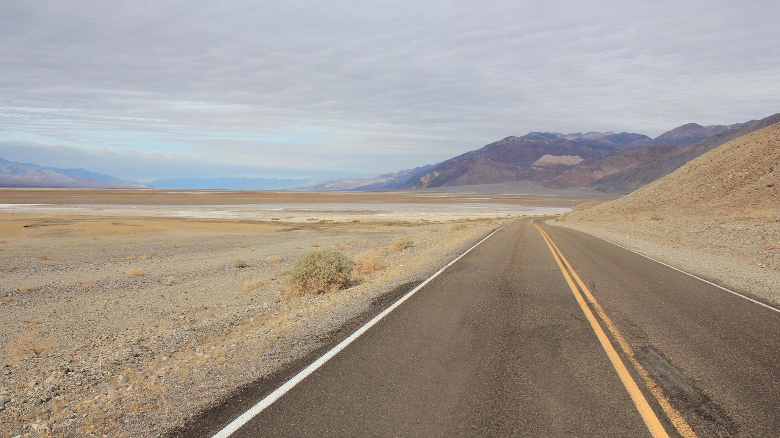 Nous quittons Las Vegas par la route 178. Nous passons Pahrump, puis poursuivons en direction de Shoshone, l'entrée sud de la Death Valley. Nous entrons en Californie, le paysage devient lunaire et semble vouloir disparaître peu à peu derrière la brume.