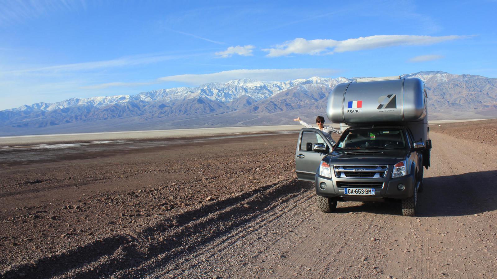 Nous venons de passer la nuit dans la Death Valley et ce matin il fait un temps magnifique. Quelle chance inespérée !