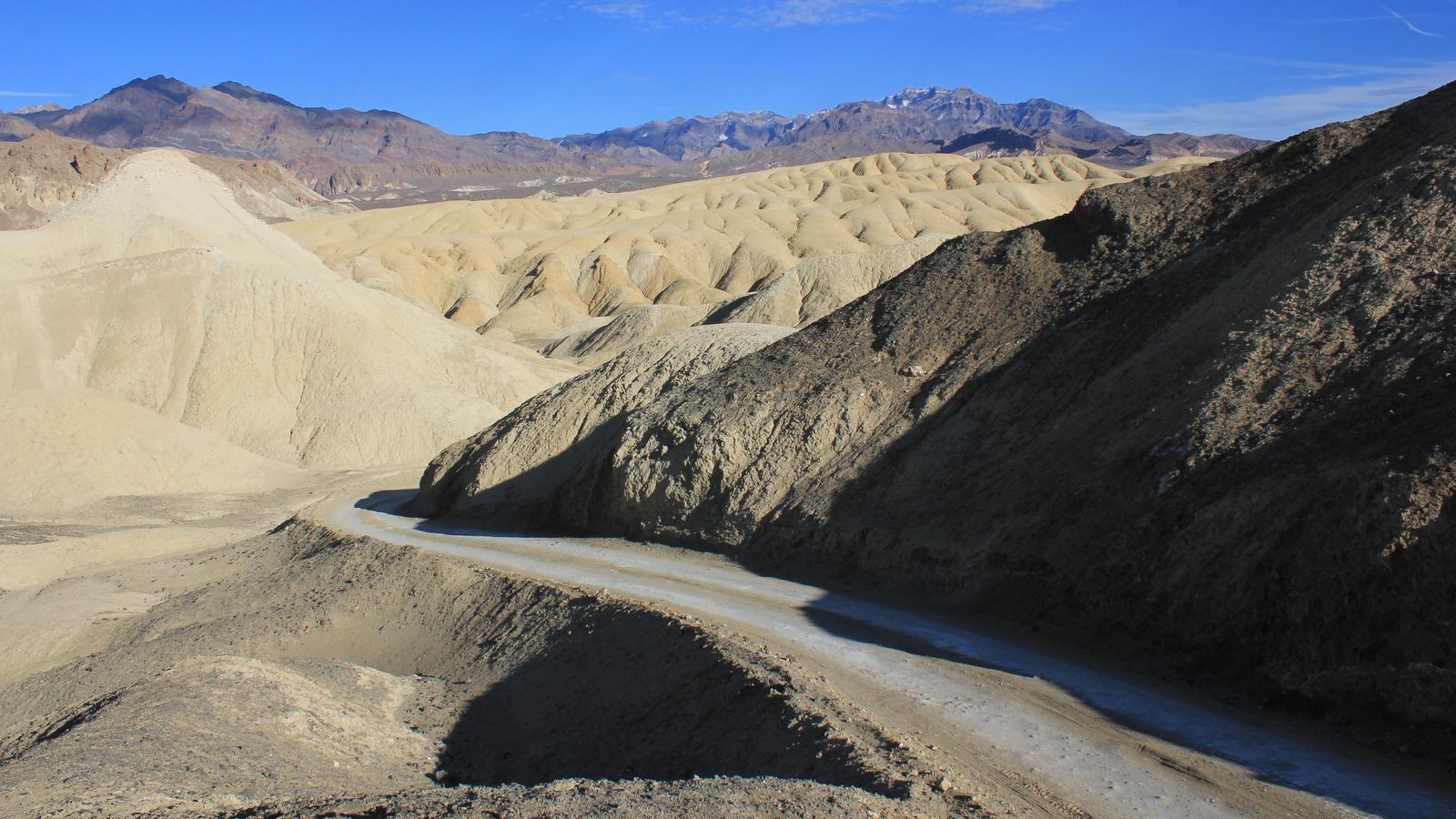 Les journées sont courtes et il faut profiter du beau temps, nous filons vers le point suivant, Zabriskie Point. Ce point de vue, considéré comme le plus beau du parc, est accessible depuis la route 190.