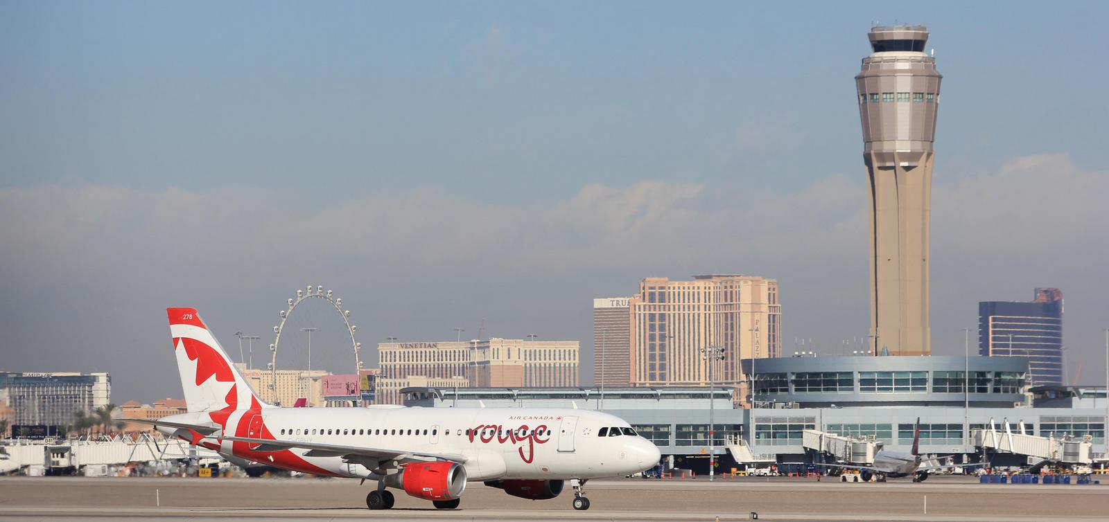La East Sunset Road longe les pistes du terminal 3 de l'aéroport Mc Carran, nous restons un moment à suivre le balai ininterrompu des attérissages et décollages avec le Strip en arrière plan.