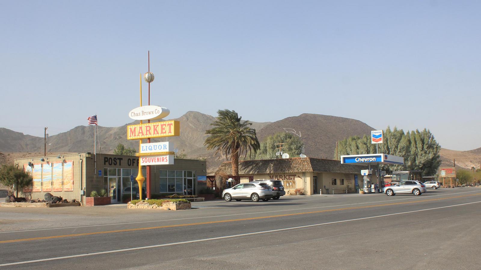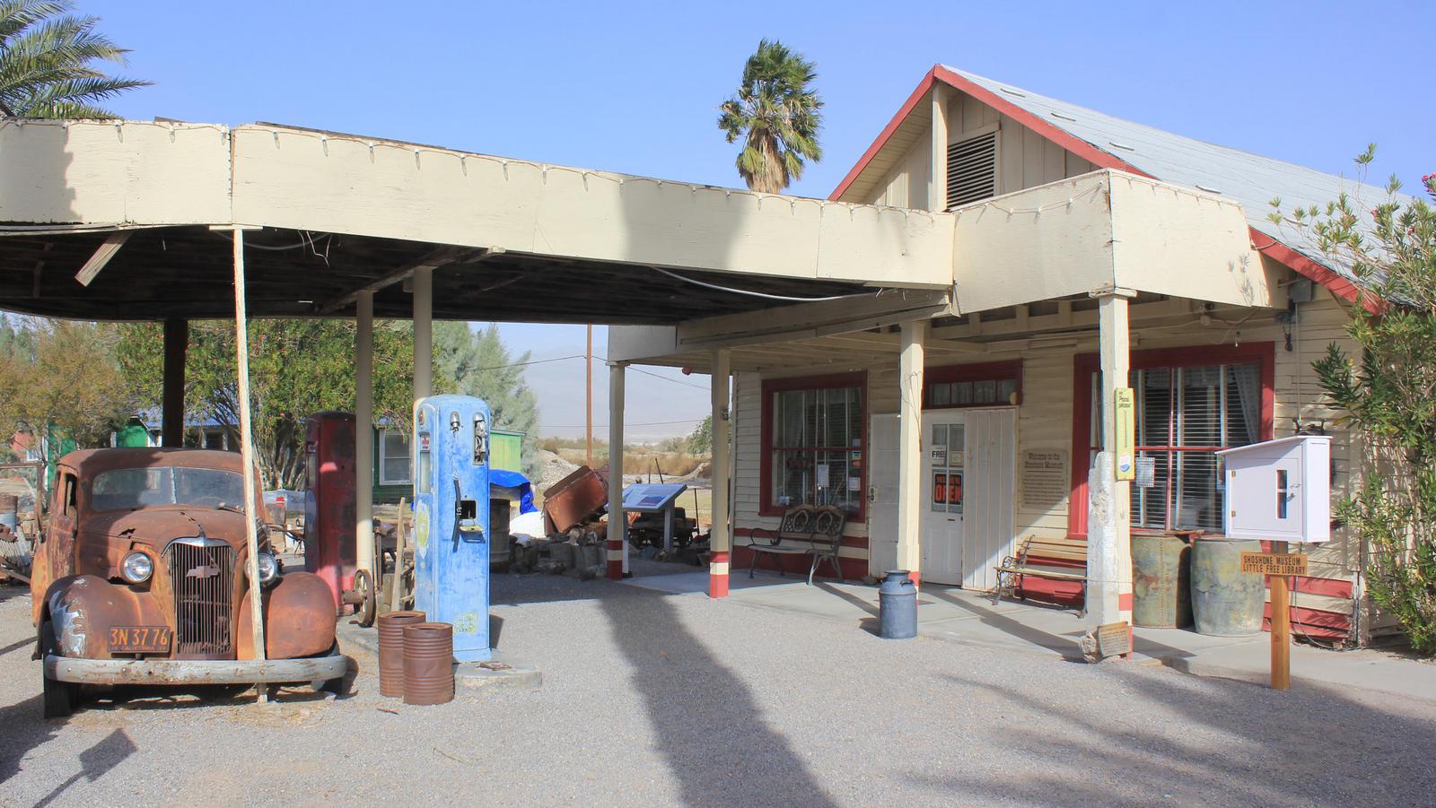 Nous arrivons à Shoshone, dernier village avant d'entrer dans la Vallée de la Mort, le prochain est à 120km. Ce dernier est minuscule, quelques maisons, une station service avec un diesel à plus de $4 le gallon, et un petit musée-visitor center installé dans l'ancienne station service.