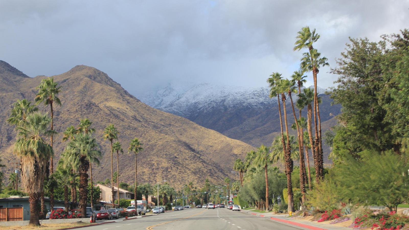 Le ciel est bien bas ce matin, la neige s'est arrêtée à une centaine de mètres au-dessus de nous, mais d'ici midi, le soleil sera de retour, parole de météorologue ! Nous revenons à Palm Springs et partons visiter le centre ville.