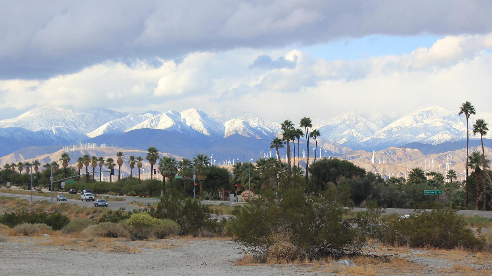 Nous arrivons à Palm Springs. Comme dans la Vallée de la Mort, il y a quelques jours encore c'était la fournaise ici. il est midi, il fait 12°C...