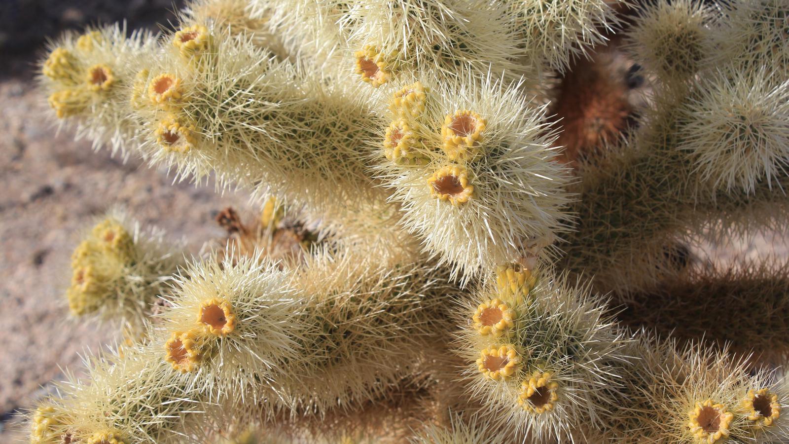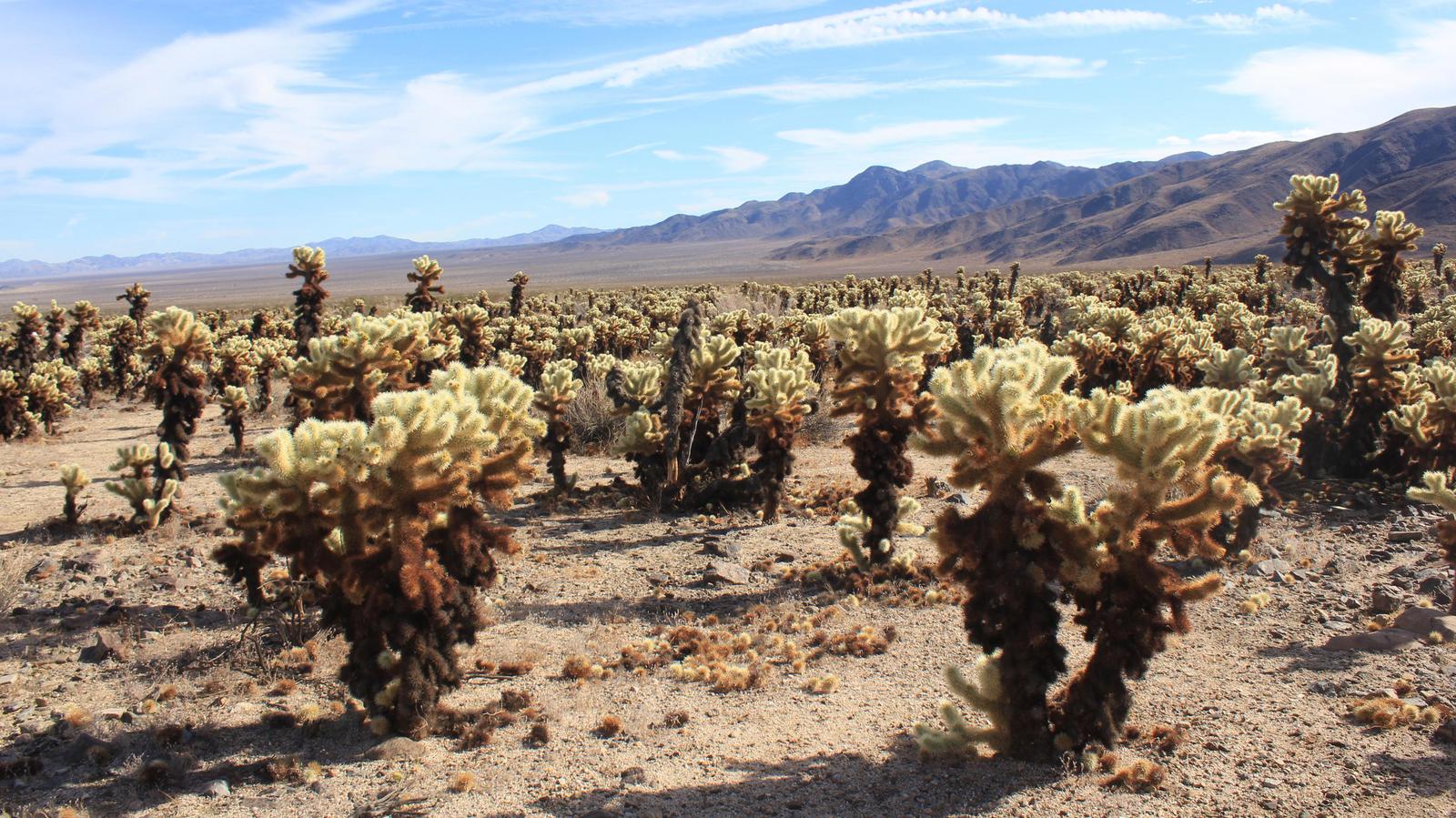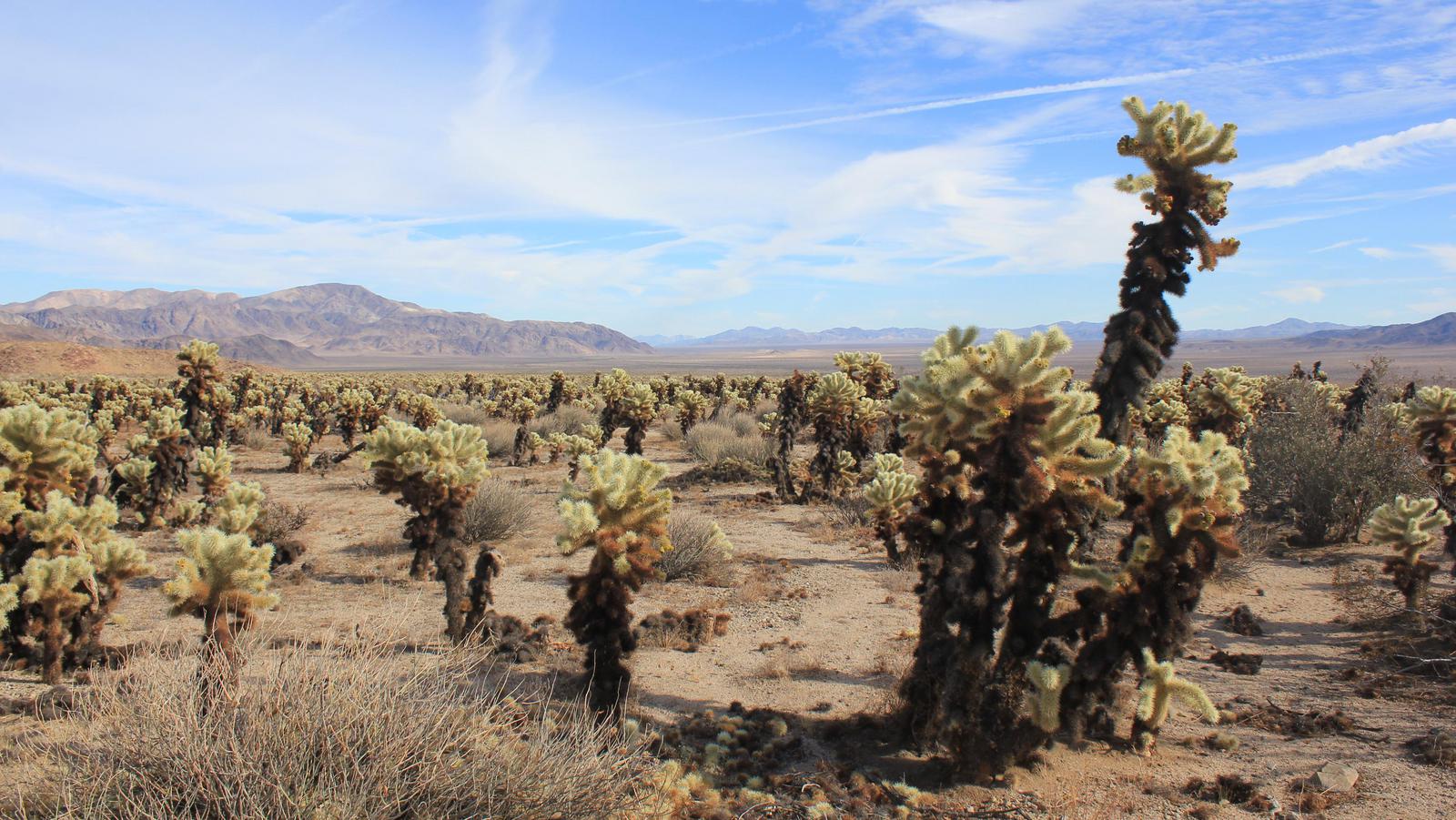 Dernier point d'intérêt à découvrir, le Cholla Cactus Garden. Nous prenons la direction de Cottonwood, l'entrée sud du parc et roulons une quinzaine de kilomètres. La route passe à travers le Wilson Canyon et débouche sur un plateau immense couvert de ces fameux cactus. Le spectacle est saisissant. Nous faisons la boucle indiquée puis quittons définitivement le parc.