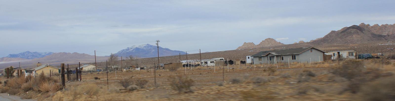 Nous reprenons la route 247 de l'aller. A y regarder de plus près, désert naturel ne signifie pas forcément désert humain. Des gens habitent sur ces terres, l'habitat est très pauvre, ils vivent sans eau courante, dans de vieilles caravanes souvent bâchées ou dans des barraques en bois délabrées...