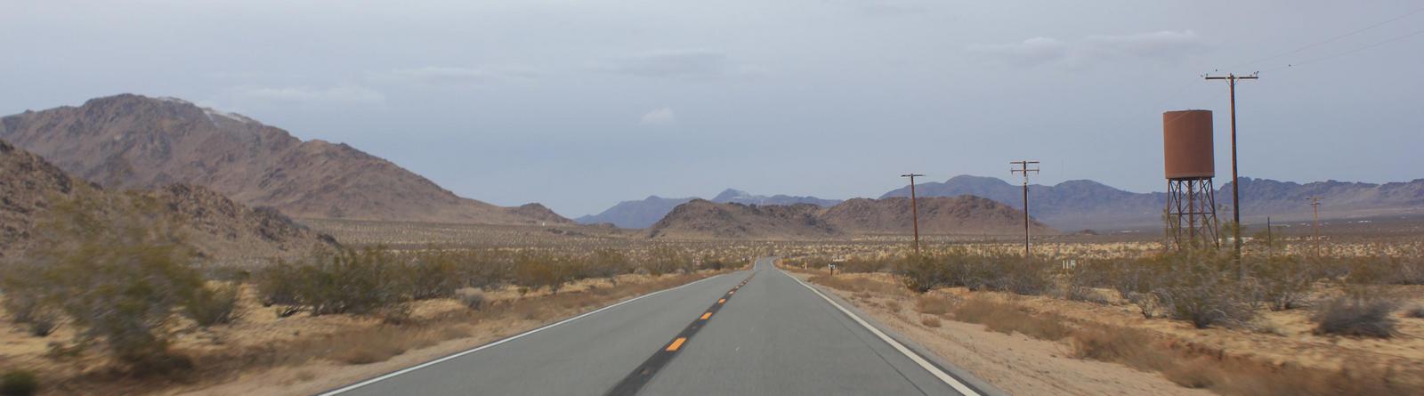 Nous quittons Barstow par la route 247. Notre itinéraire passe par Lucerne Valley (pourquoi sont-ils allés chercher ce nom ?), puis par Yucca Valley (là parcontre, on comprend mieux...). Ces routes sont toujours des lignes droites à perte de vue coupant à travers des déserts.