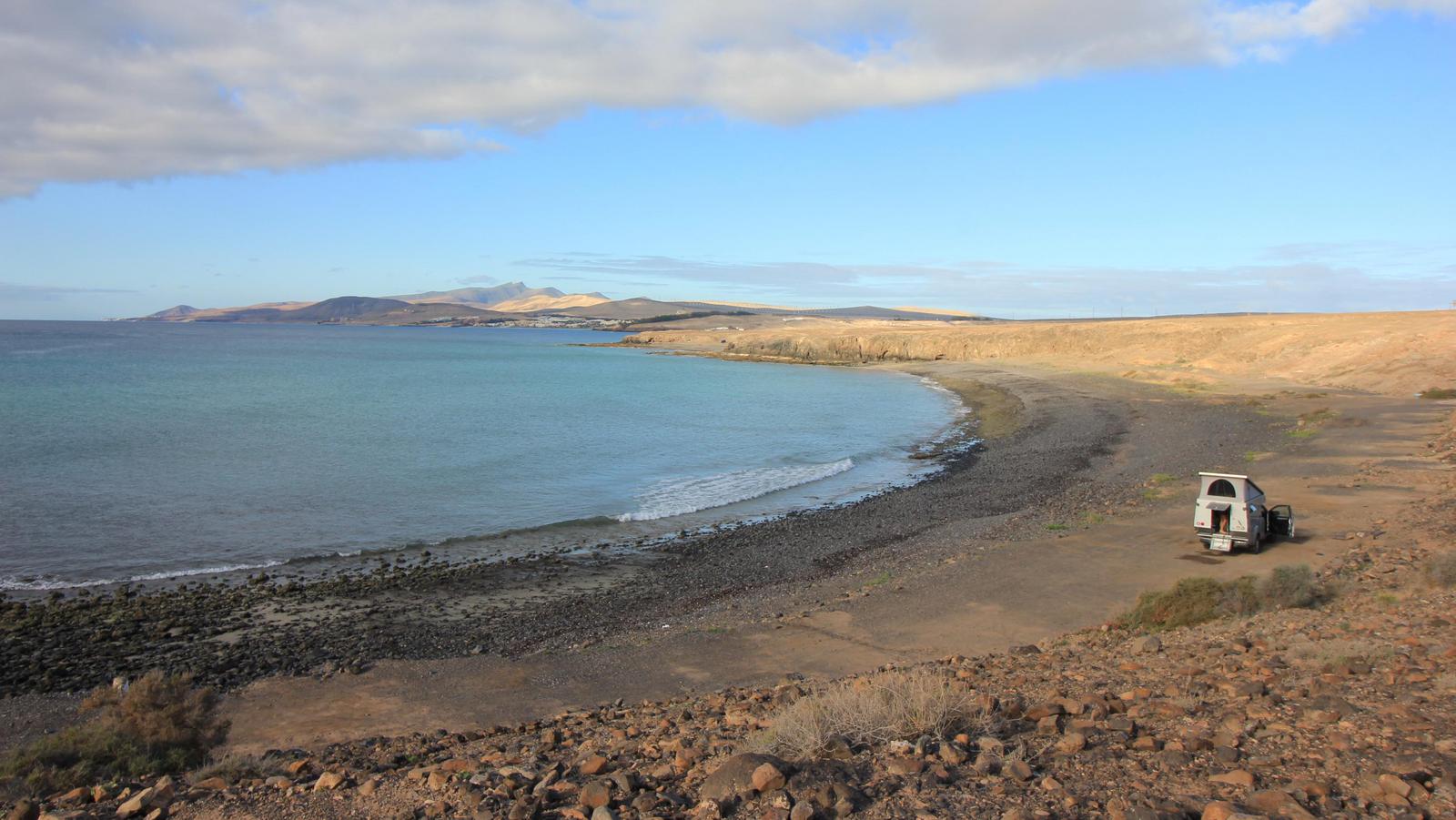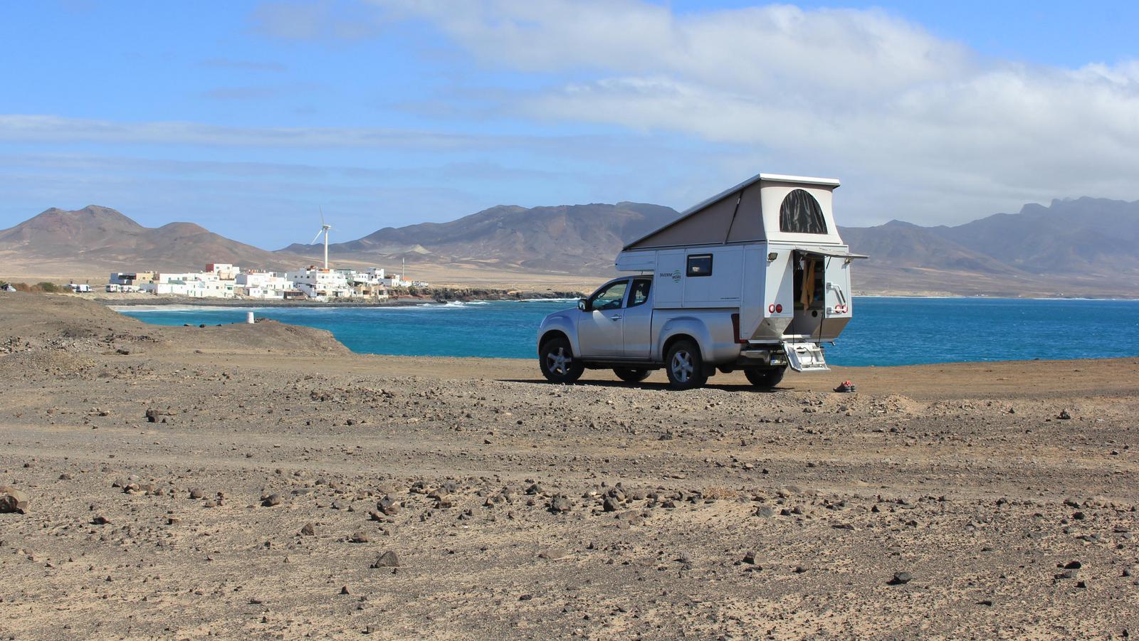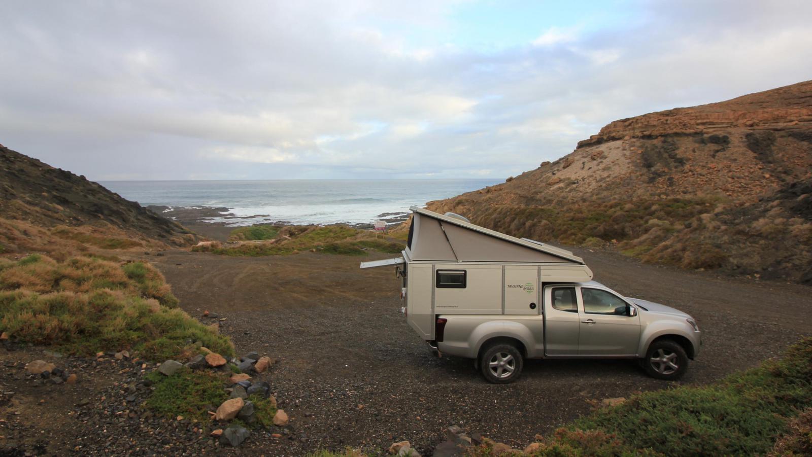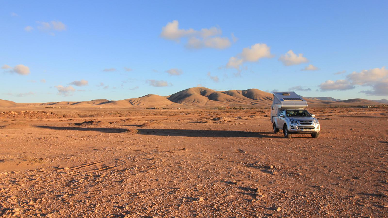 - Fuerteventura nous a offert les plus beaux bivouacs nature. En revanche, l'île est très venteuse et nous étions souvent inquiets pour notre toit relevable. Inutilement parfois, car nous n'avons dû baisser le toit qu'une seule fois sur les 80 nuits passées sur place.