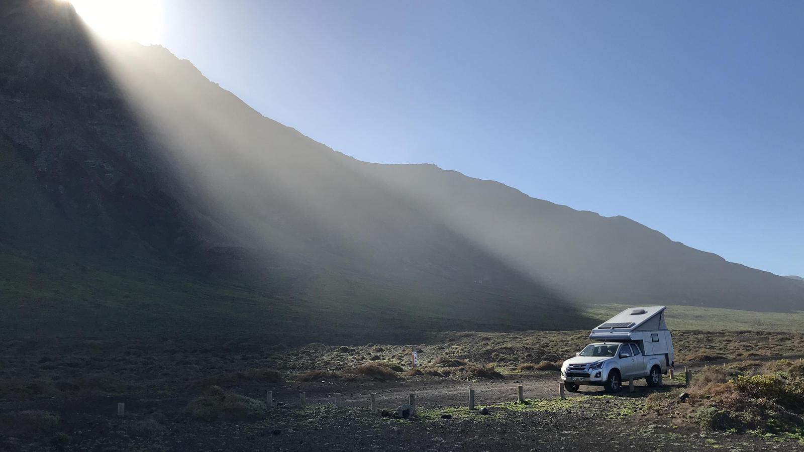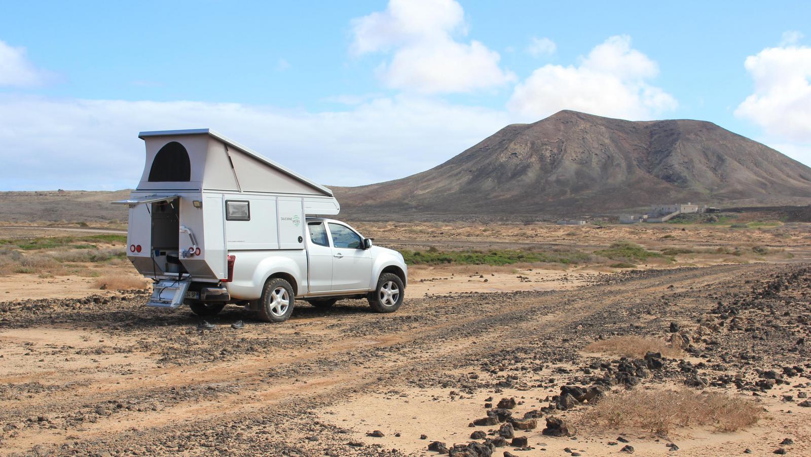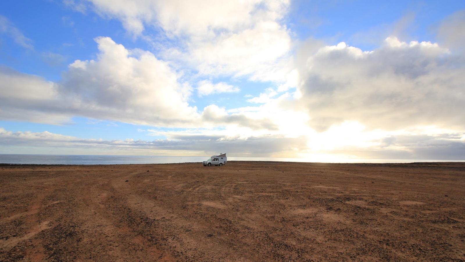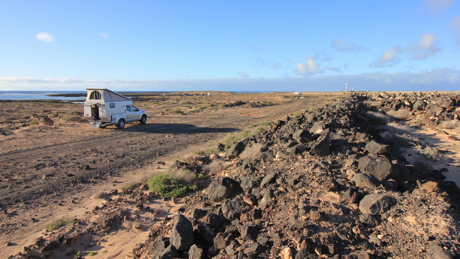 - Fuerteventura nous a offert les plus beaux bivouacs nature. En revanche, l'île est très venteuse et nous étions souvent inquiets pour notre toit relevable. Inutilement parfois, car nous n'avons dû baisser le toit qu'une seule fois sur les 80 nuits passées sur place.