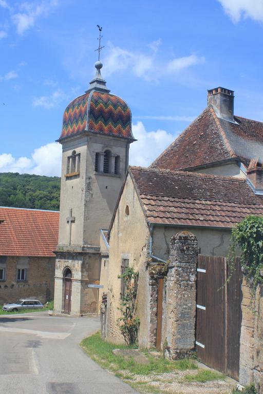 L'itinéraire suivi par notre GPS est toujours aussi plaisant. Nous passons au sud de Besançon sans traverser la moindre agglomération, hormis quelques petits villages où nous pouvons admirer de jolis specimens de clochers comtois.