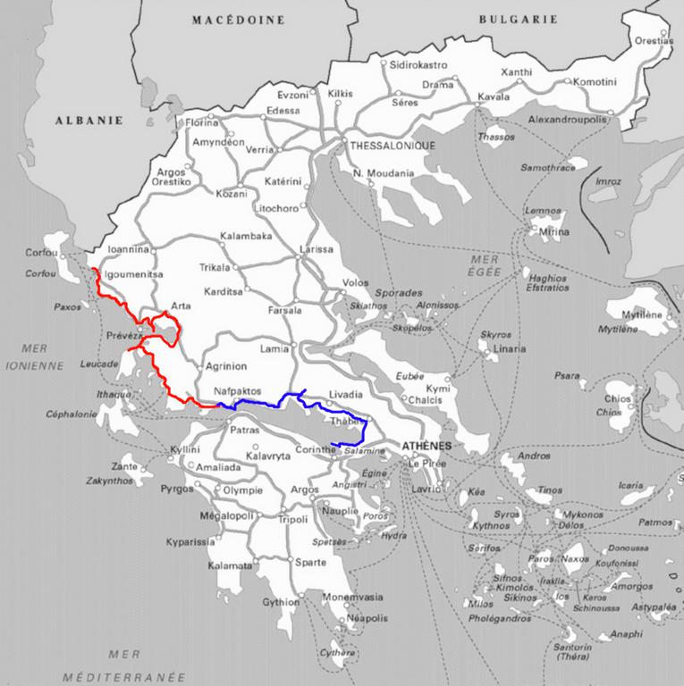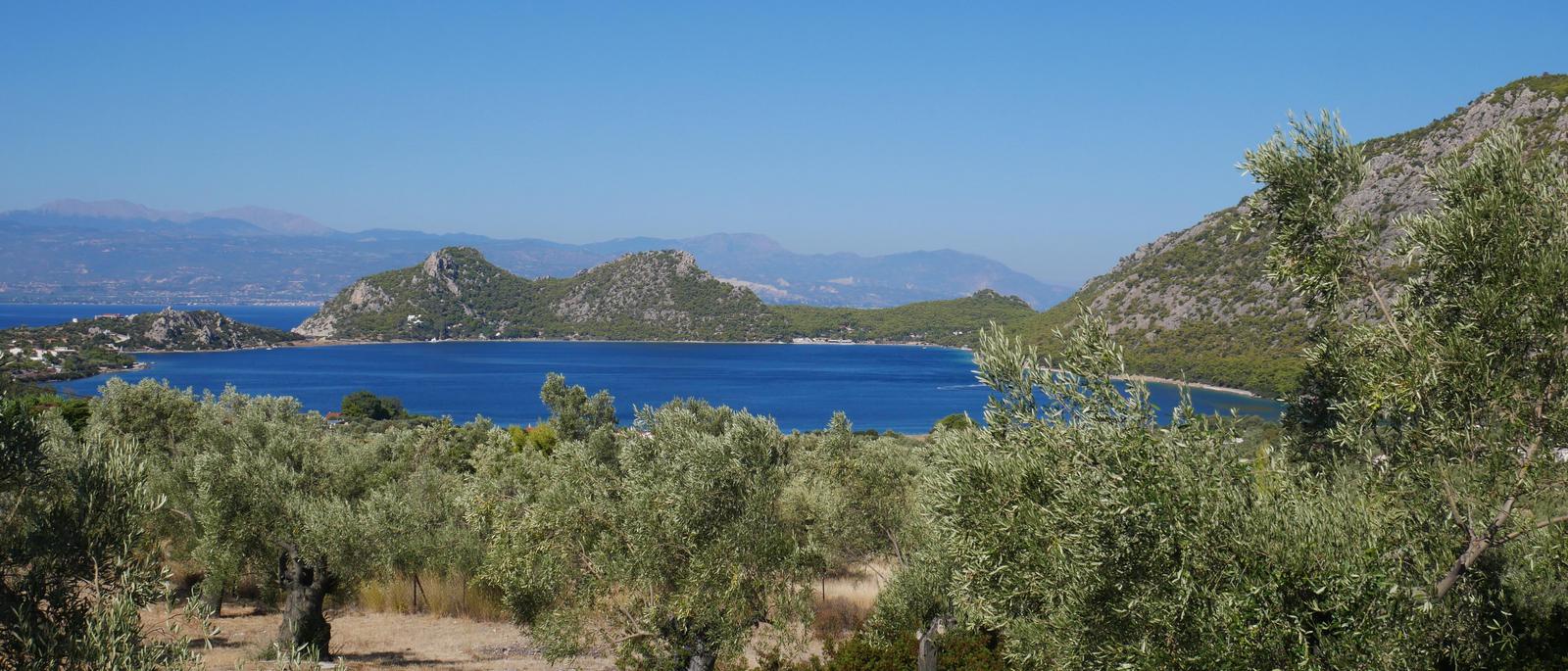 Une dernière photo de la Mer des oliviers et nous quittons le Delphi Camping. Nous descendons à Itea pour faire quelques courses, puis prenons la direction de Corinthe.