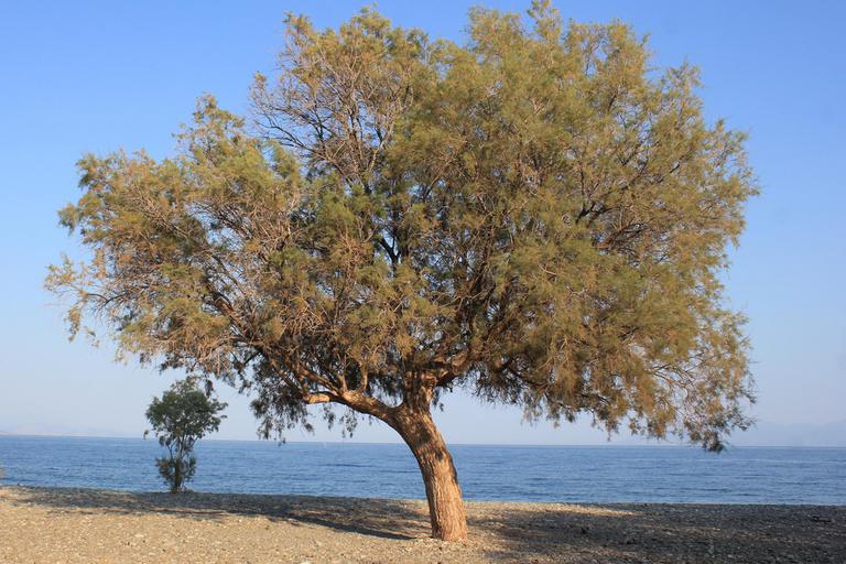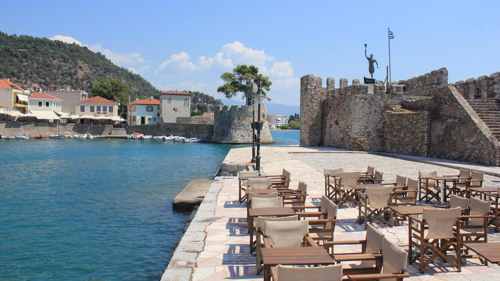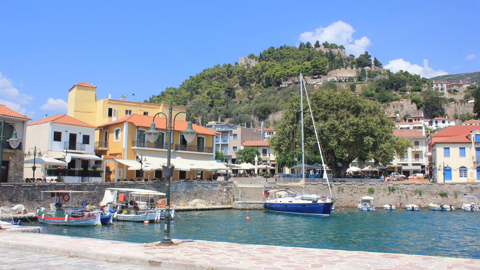 Nous tentons de nous garer en vain près du port. Il y a foule et tous les stationnements sont complets. Nous trouvons enfin celui d'une taverne en bord de mer, à la sortie de la ville en direction de Psatha. Nous nous y arrêtons et déjeunons.