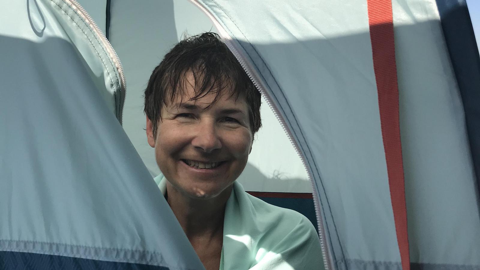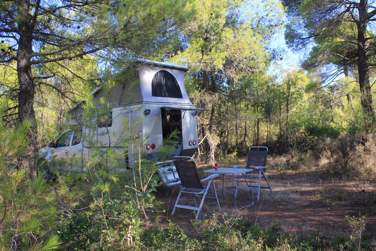 Le soleil s'est couché, plusieurs familles sont encore sur la plage et dans l'eau. Nous n'y avions pas prêté attention, une petite caravane pliante Rapido s'est installée à côté de nous.