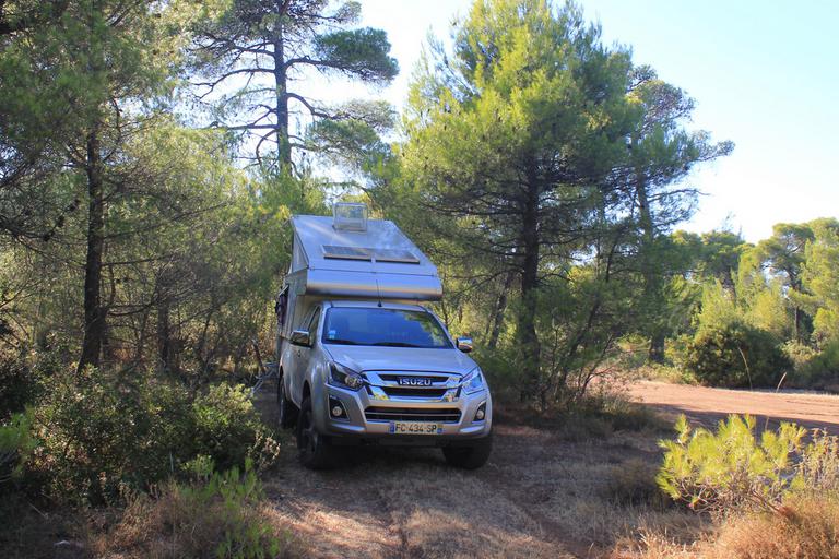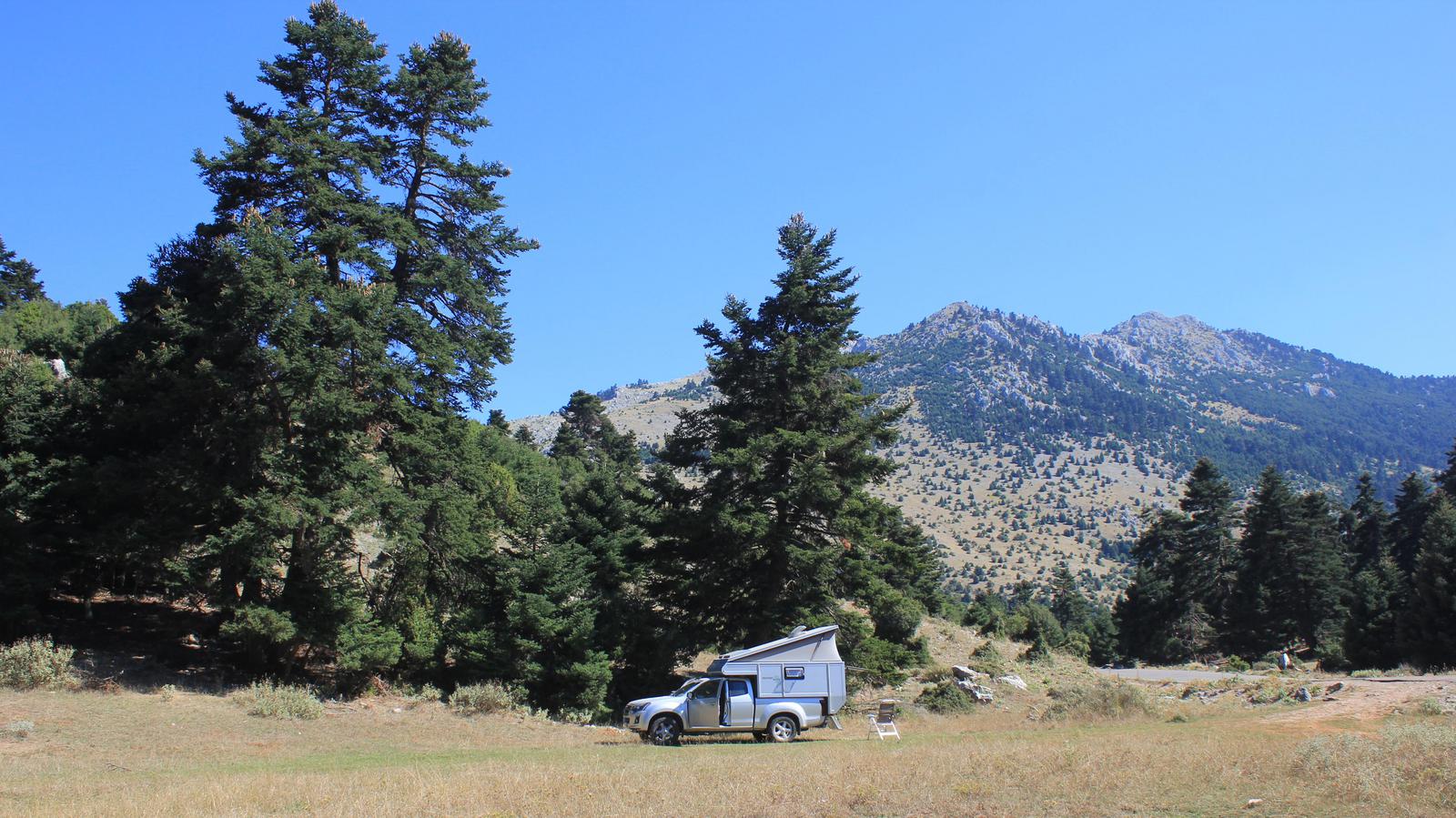 Park4Night indique un lieu en pleine nature, dans la montagne, juste avant d'arriver à Pisia. C'est exactement ce qu'il nous faut aujourd'hui.