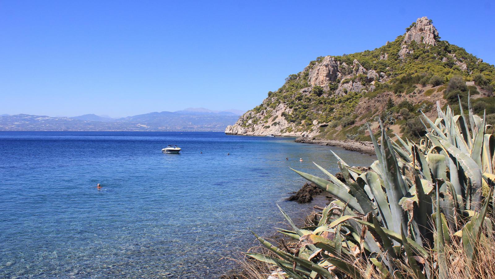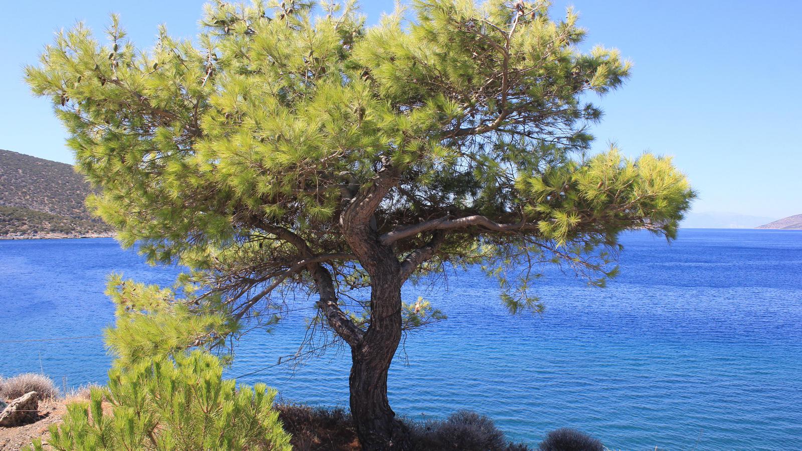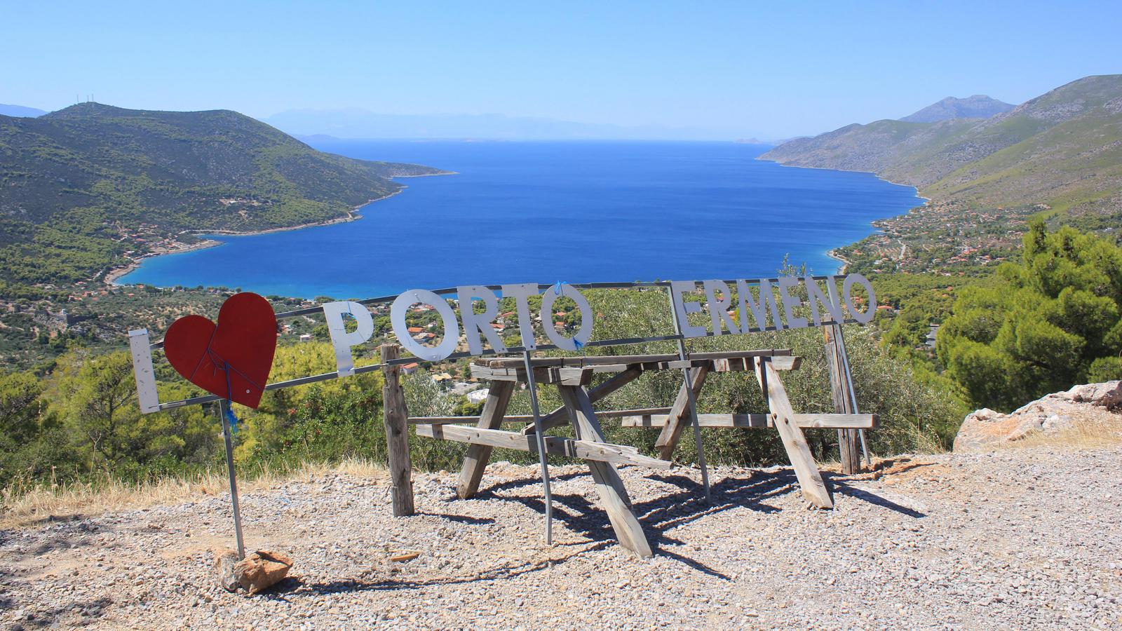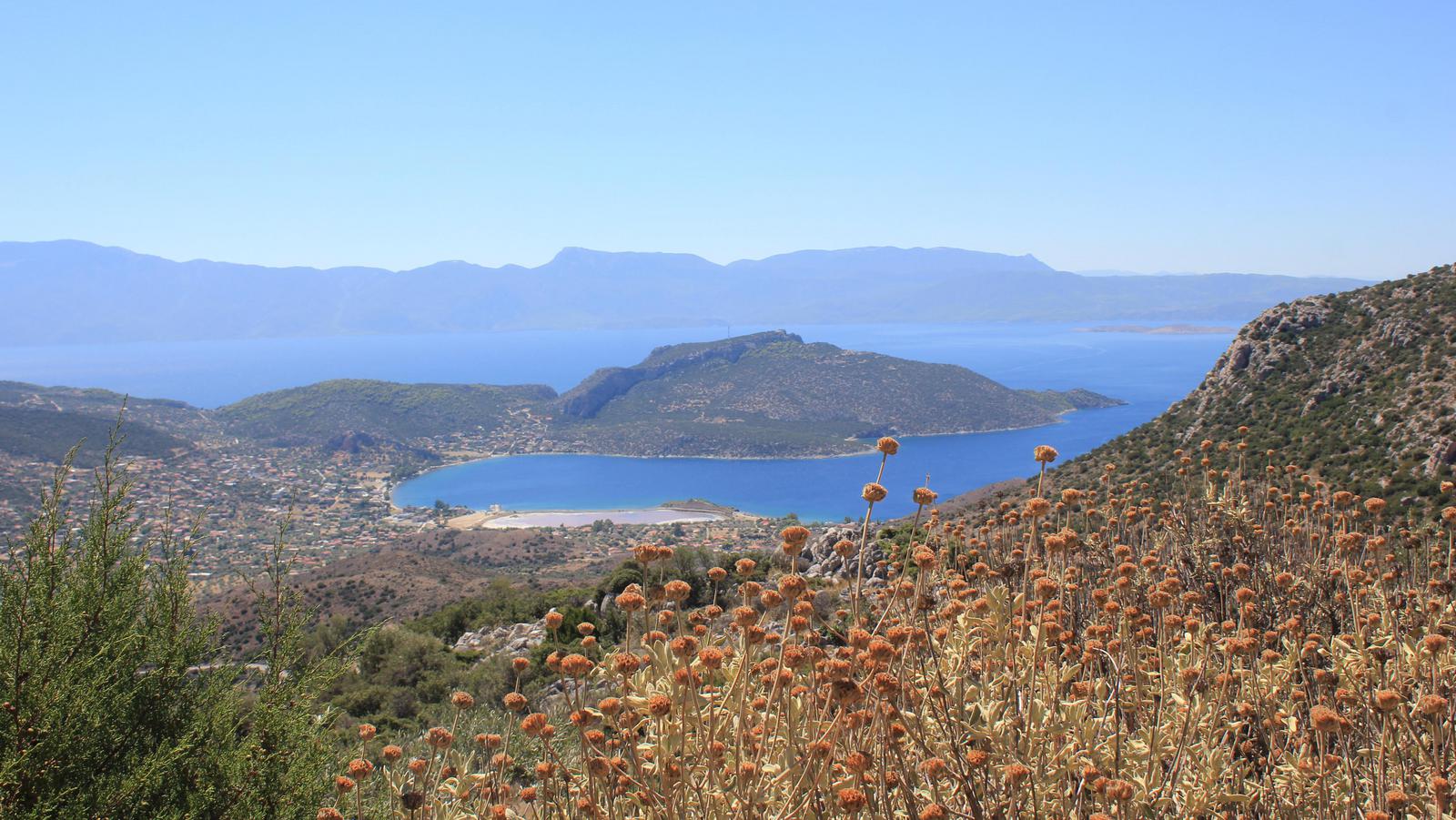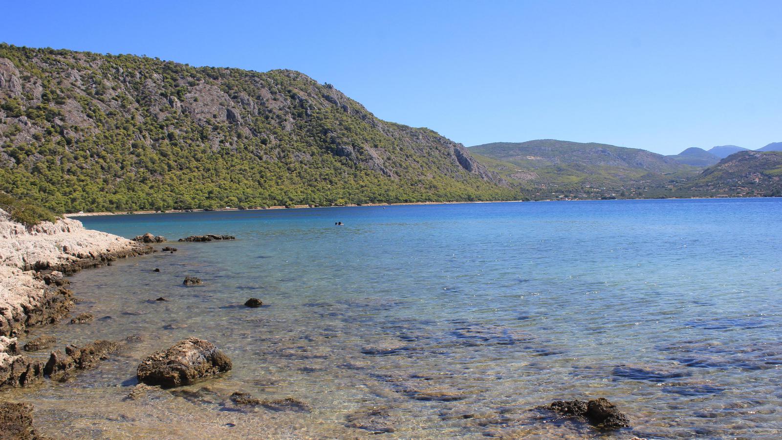 Nous laissons la côte pour une grande virée de près de deux heures à l'intérieur des terres. Nous retrouvons la mer en prenant l'option de rejoindre Porto Germeno. La descente sur la baie au milieu des pins est superbe.
