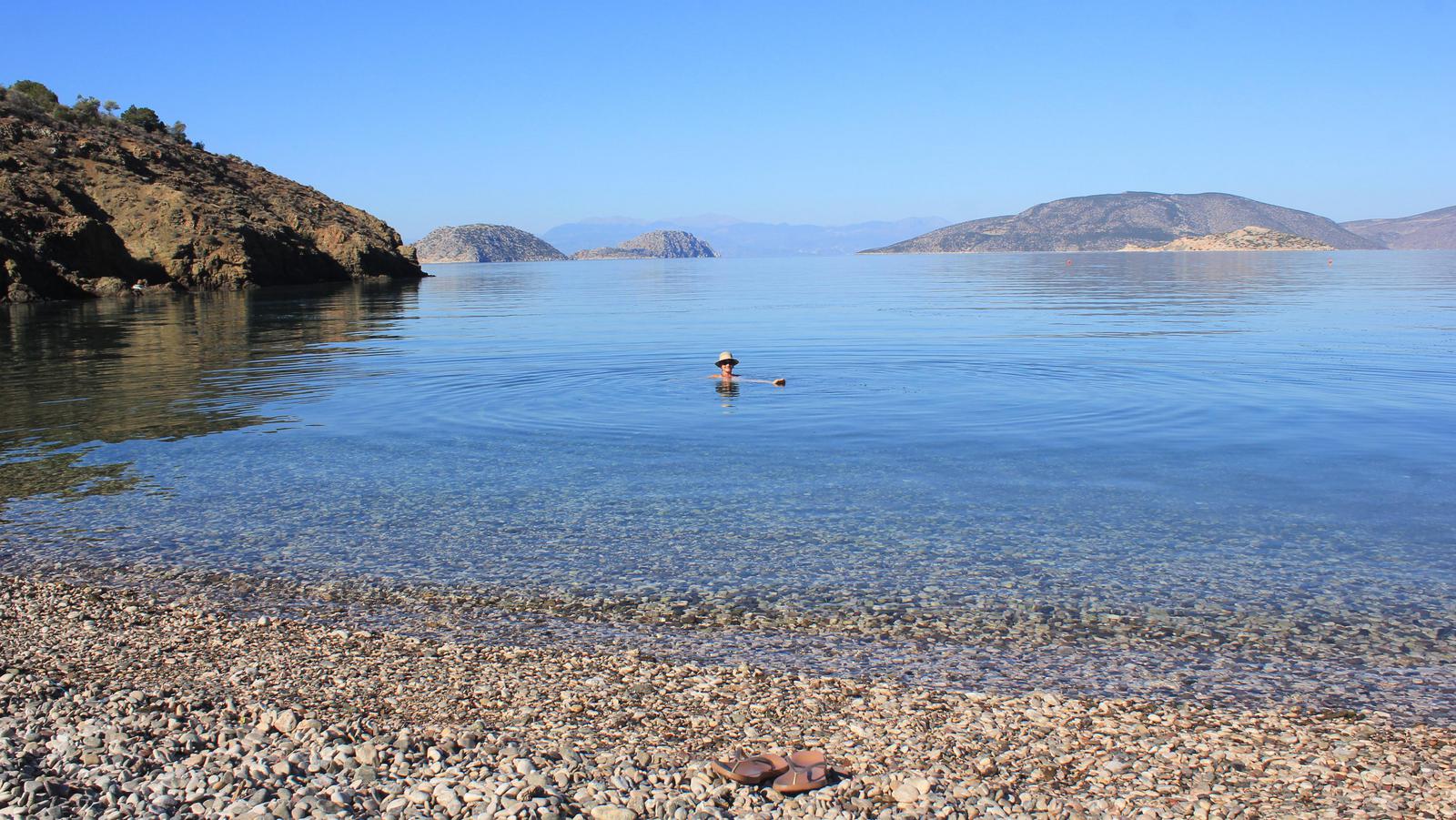 Nous nous installons à l'extrémité de celle-ci. Il y a beaucoup de monde à la plage, surtout des familles et uniquement grecques.