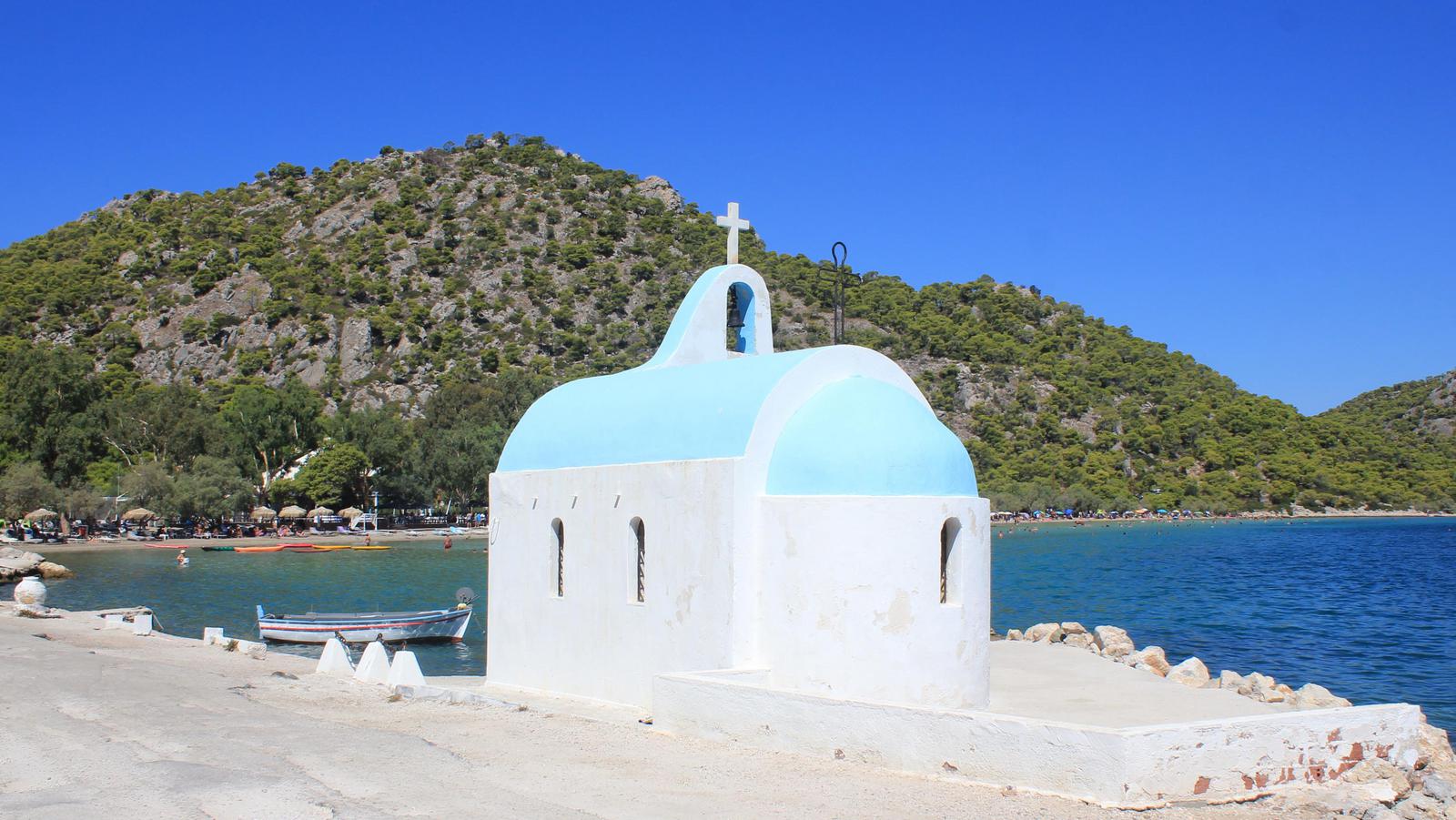 Nous nous baignons à plusieurs reprises, marchons jusqu'à la petite chapelle et au chenal, puis déjeunons dans l'unique taverne ouverte pour cette saison. Le Guide du Routard écrit qu' "il est amusant de se baigner dans le chenal". Drôle d'idée lorsque l'on voit la force du courant et la vitesse à laquelle les bateaux l'empruntent...