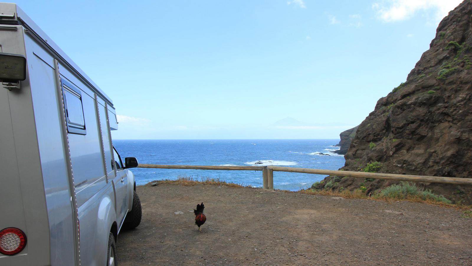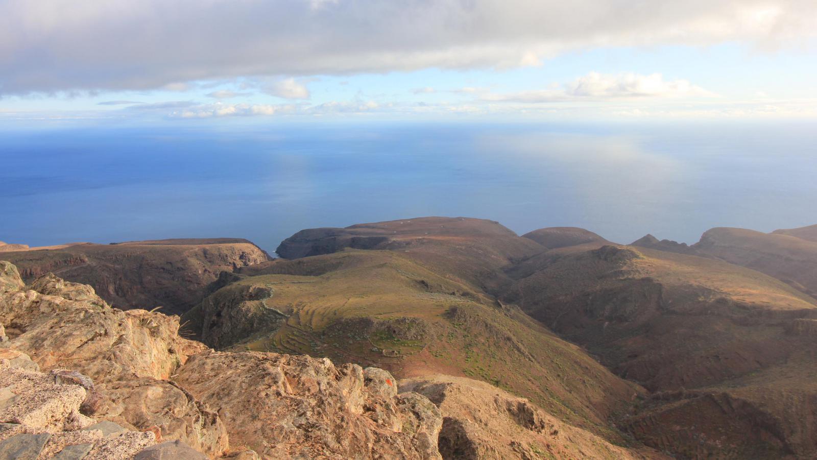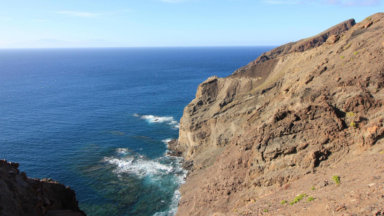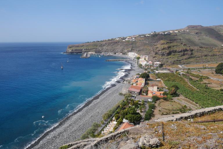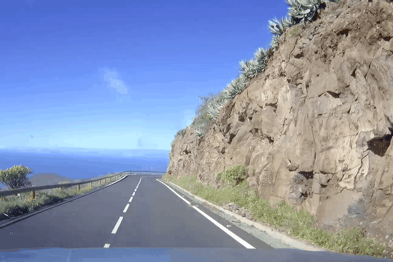 Comme les jours précédents, nous retrouvons le soleil dès que nous sommes redescendus en-dessous de 800m. Le ciel est maintenant franchement dégagé, nous apercevons même le Teide sur Tenerife sur l'autre côté de l'île.