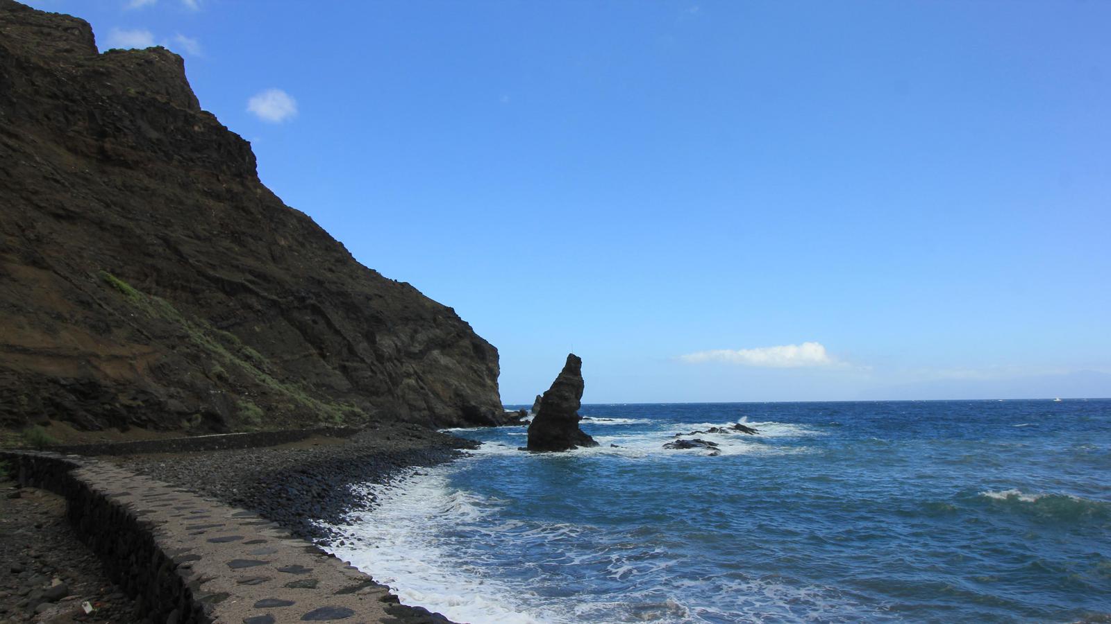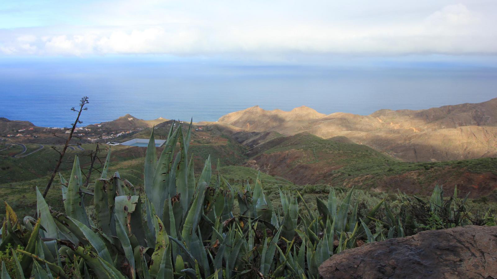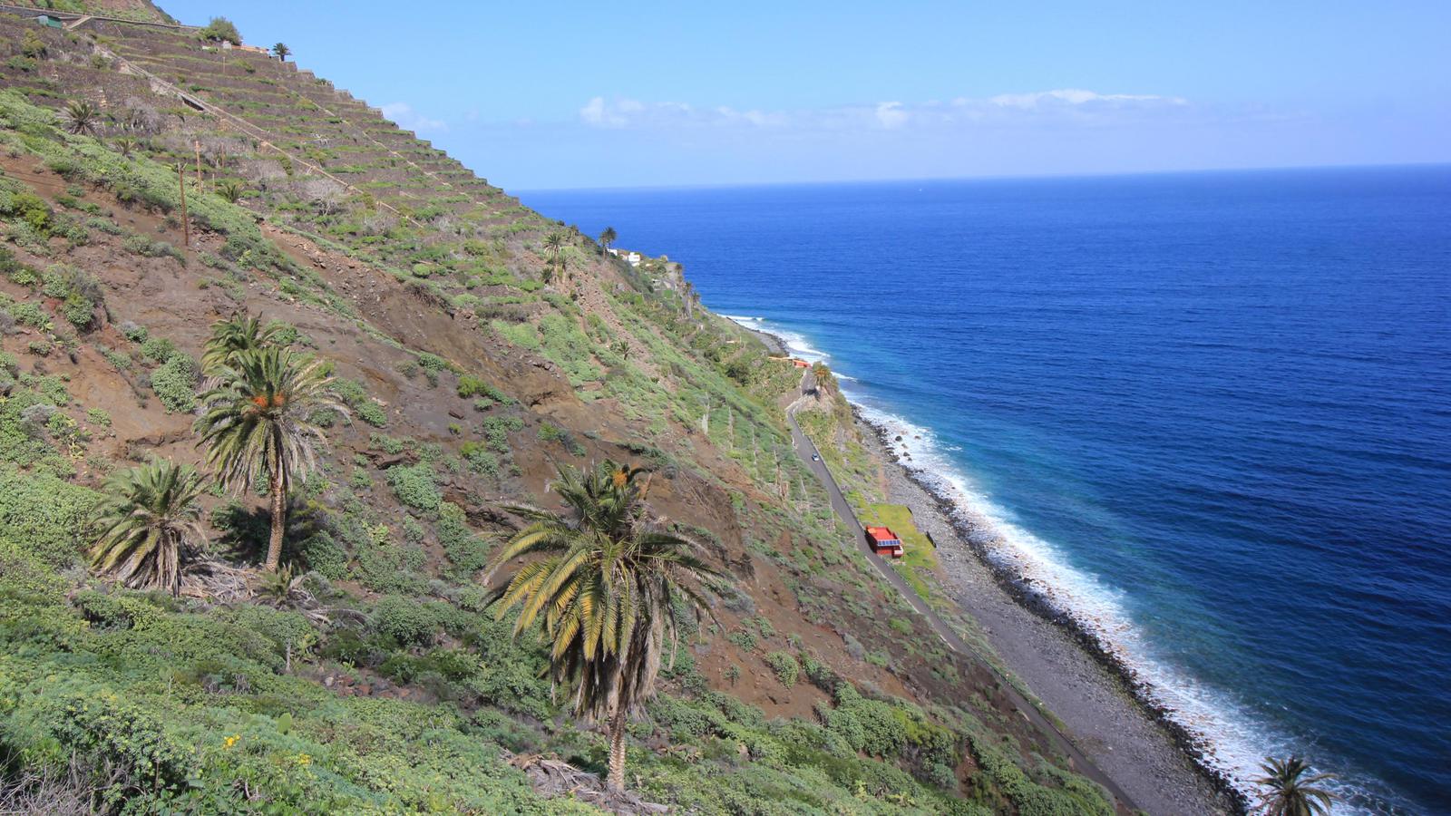 Comme les jours précédents, nous retrouvons le soleil dès que nous sommes redescendus en-dessous de 800m. Le ciel est maintenant franchement dégagé, nous apercevons même le Teide sur Tenerife sur l'autre côté de l'île.