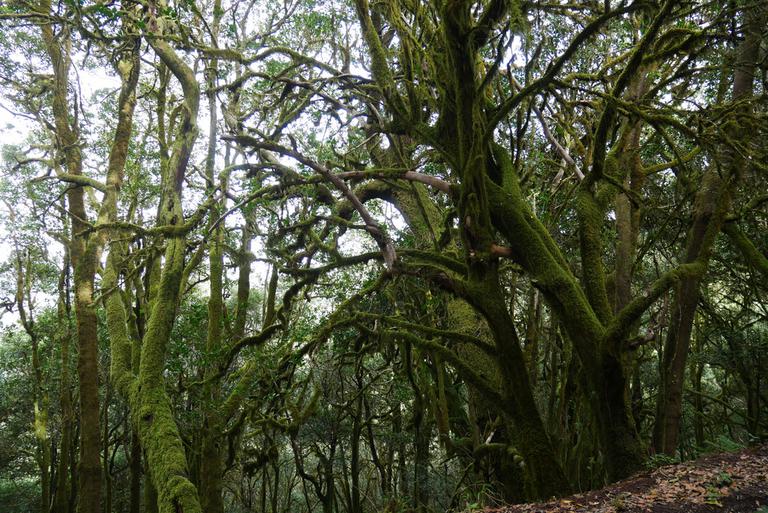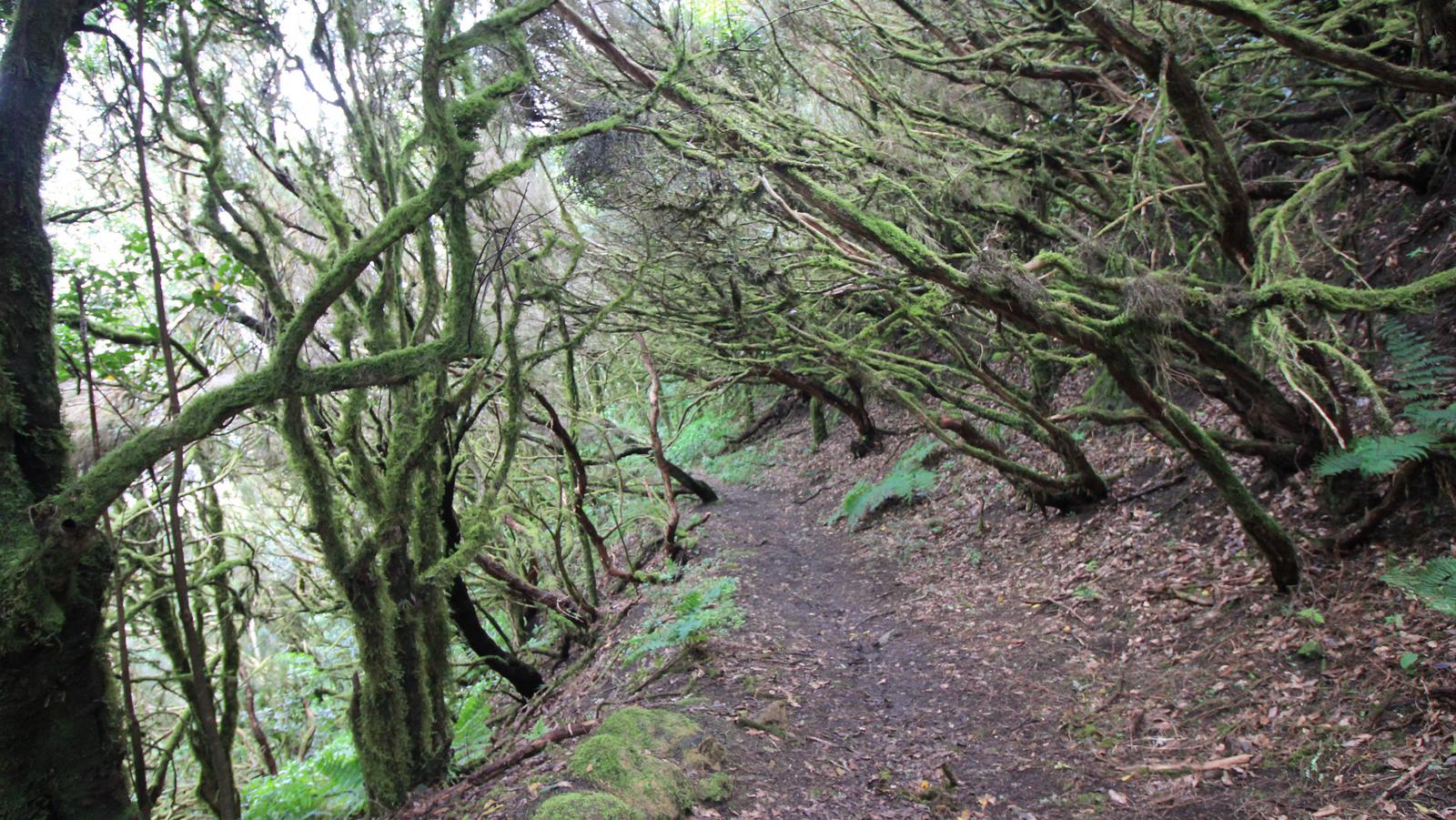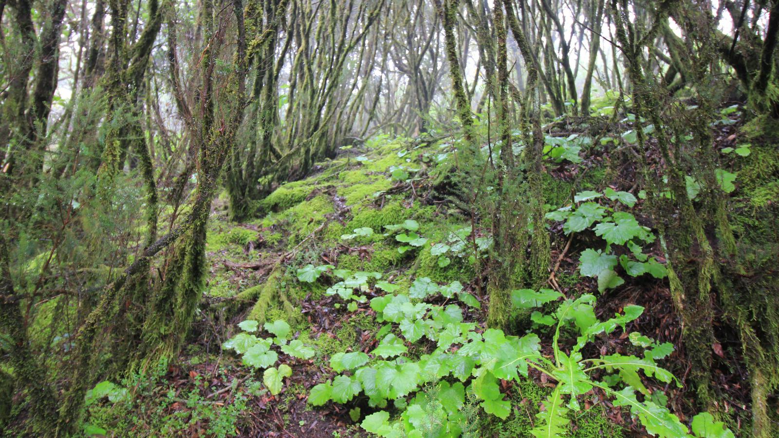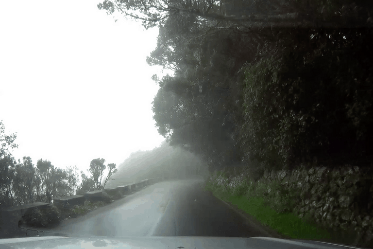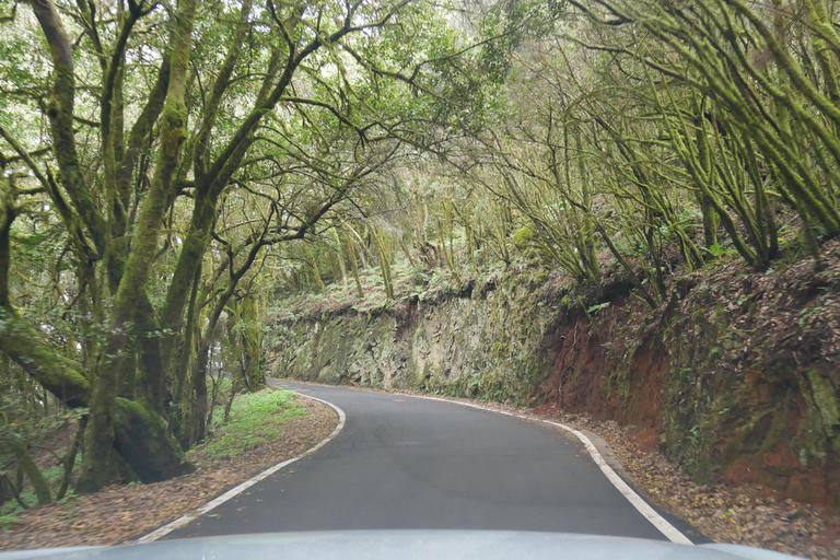 Nous poursuivons notre remontée et entrons dans le parc de Garajonay. Nous retrouvons le brouillard et la pluie. Nous sommes de retour sur la route GM-2, passons de nouveau devant le Centro Recreativo de Laguna Grande où l'atmosphère est toujours aussi humide et fraîche... Nous longeons la crête en restant à une altitude proche de 1200m et passons les différents points de vue sans même nous arrêter. Nous arrivons à une intersection, nous bifurquons en direction de Playa Santiago.