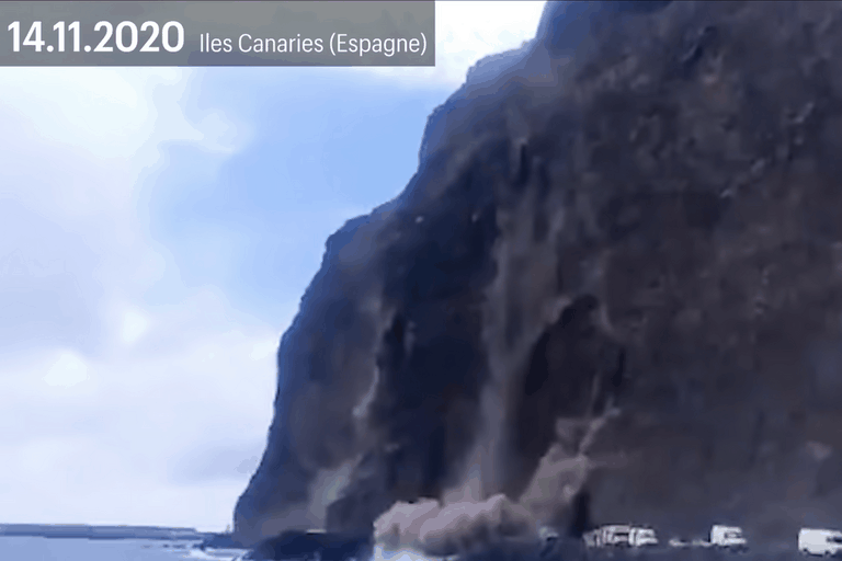 Nous découvrons enfin Valle Gran Rey, la plus grande station balnéaire de l'île. Le site naturel est exceptionnel fait de peitite plages noires posées au pied d'impressionnantes falaises tombant à pic dans la mer. Du reste l'une de ces plages, la Playa del Ingles, est interdite au public depuis qu'un énorme pan de montagne s'est écroulé sur les camping-cars garés en bord de mer le 14 novembre dernier. Dangereux les spots Park 4 night! Pas de blessés mais un bon nettoyage a sans doute été nécessaire sur quelques panneaux solaires...