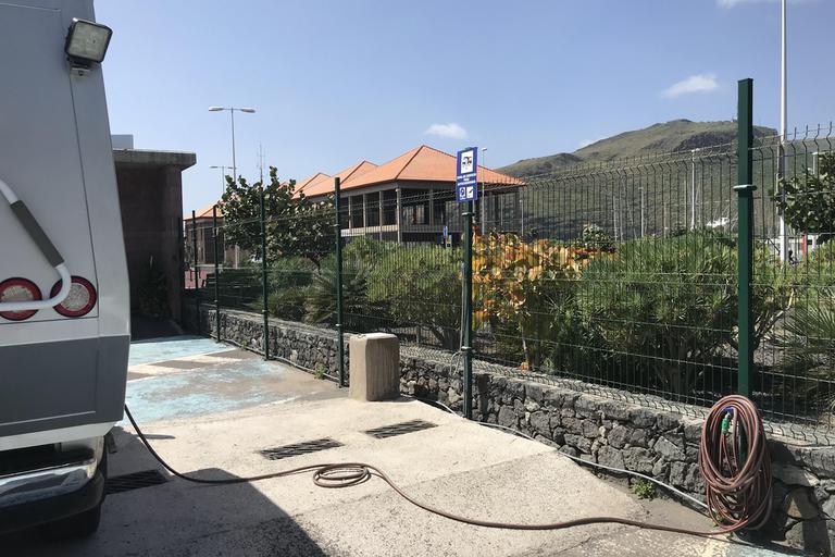 Nous récupérons le soleil à San Sebastian, mais avec un peu de vent. L'aire de service est bien au rendez-vous sur un parking payant sur le port. Le plein d'eau et la vidange nous coûtent 3 euros. L'installation est très fonctionnelle et très bien entretenue par le gardien du parking. Nous échangeons un peu avec lui, il connait la France et nous parle, lui-aussi, de nos si chéres autoroutes... Nous faisons quelques courses puis partons en direction de Valle Gran Rey, la dernière localité de la côte que nous n'avons pas encore visitée.