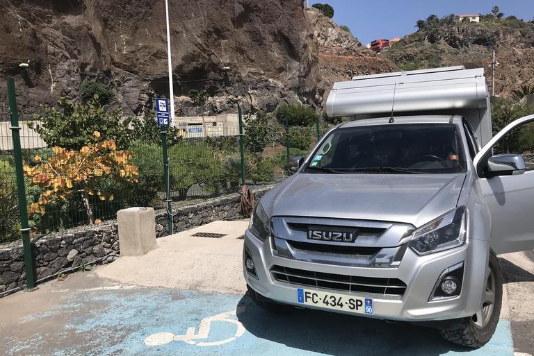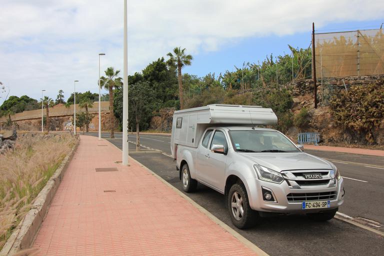 Nous prenons l'autoroute en direction de Los Cristianos. Nous faisons quelques courses au Lidl de San Miguel de Abona. Ceci étant fait, nous nous mettons à la recherche d'un lieu de bivouac en bord de mer, dans les environs de Costa del Silencio. Nous faisons plusieurs spots indiqués sur P4N sans trouver notre bonheur, ce sont soit des parkings aux pieds d'immeubles d'habitation, soit des emplacements qui n'existent plus...