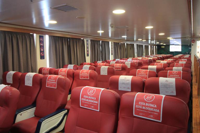 Le bateau est vide et la traversée de 2h30 très calme. L'approche du port de San Sebastian est très belle, une fois passé l'immense jetée, nous découvrons une petite ville colorée construite à flanc de colline au-dessus de son port.