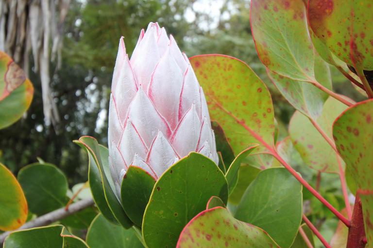 Le centre est ouvert malgré la covid, mais aucun plan papier n'est disponible, il faut les télécharger sur le site du parc. La guide nous propose de visionner une vidéo de présentation en français, seuls dans la salle de projection. Nous la remercions, elle semble très fière de cet espace naturel sur son île. C'est vrai que de renconter des forêts humides à cet endroit du globe est inattendu, cependant nous connaissons le brouillard et la mousse sur les arbres dans nos régions et nous ne sommes pas spécialement enthousiasmés à l'idée d'enfiler des habits de pluie pour aller passer la journée en forêt par 9°c... Avant de partir, nous visitons le jardin botanique présentant les différentes espèces du parc. Nous retrouvons des plantes que nous avons déjà croisées comme les vipérines bleues ou les pissenlits arborescents. Quant à la belle protea, elle semble être beaucoup plus rare...