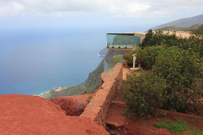Le mirador est fermé. Nous devons nous contenter de regarder de loin sa terrasse vitrée posée 620m au dessus du vide. Nous admirons le panorama sur la côte et Agulo depuis le bord arrondi de la falaise. C'est vertigineux...