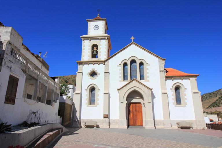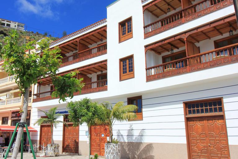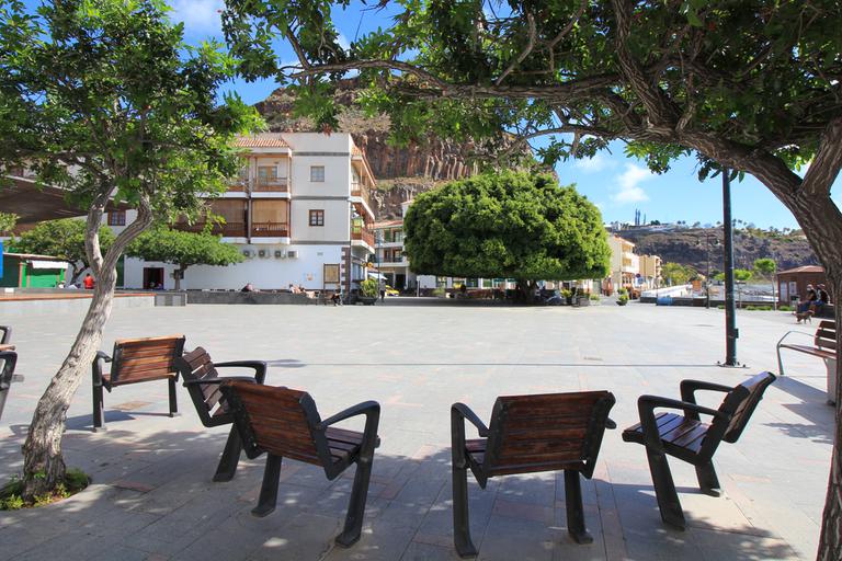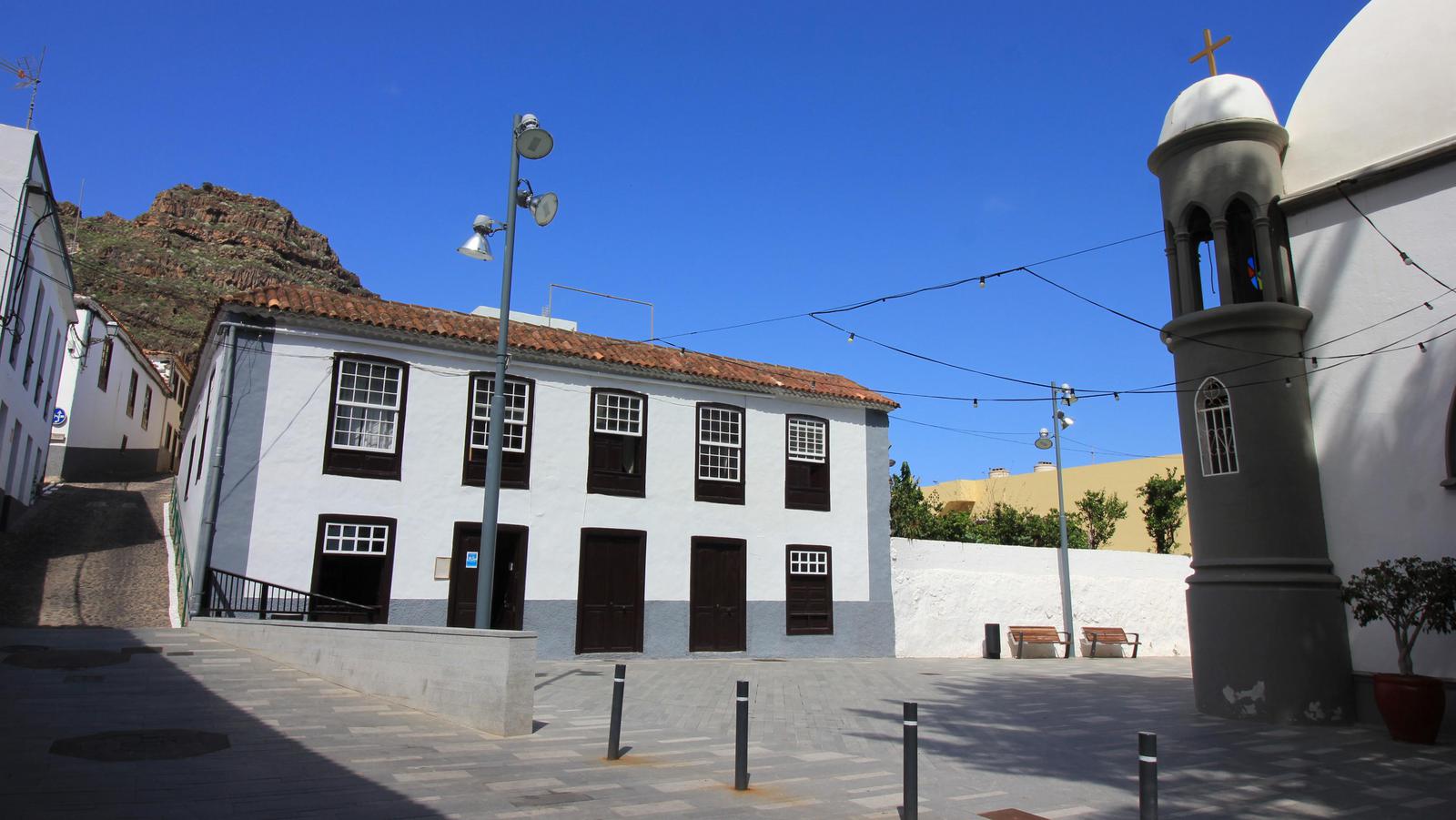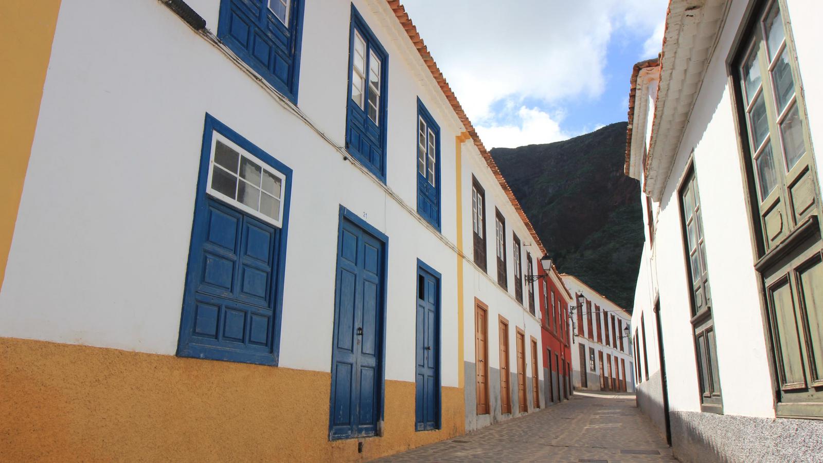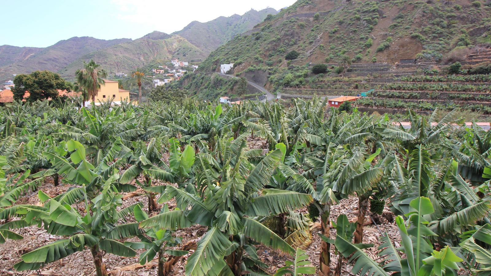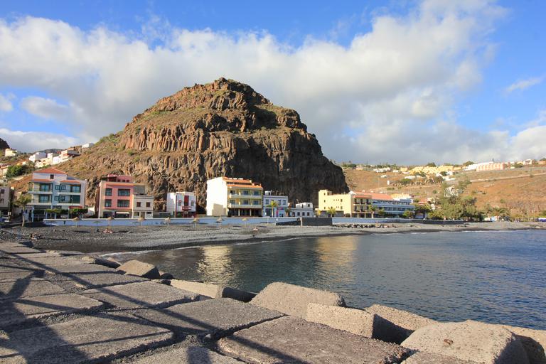 Ce village est un peu plus petit et moins étendu que Hermigua. Il se compose également de pluieurs hameaux, dispersés sur un plateau au-dessus de l'océan. On retrouve ici aussi quelques bananeraies ainsi que de nombreuses terrasses de cultures, le plus souvent en friche. Les ruelles sont agréables, bordées de maisons canariennes bien entretenues, seule l'église dénote avec une toiture en dôme qui me la fait prendre pour une structure démontable en arrivant par la route par le dessus.