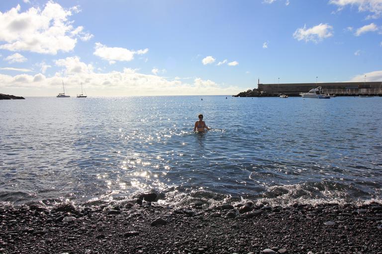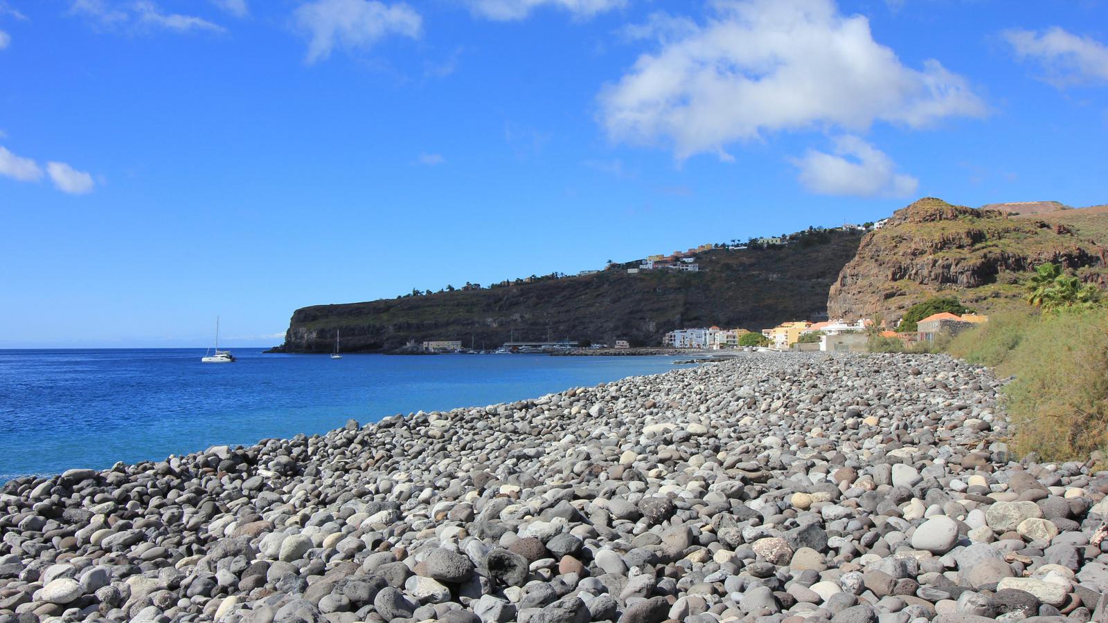 La nuit fut très calme. Nous prenons notre petit déjeuner puis allons gouter l'océan. Ce premier bain à La Gomera est bien agréable, l'eau est limpide et les petits galets gris chauffent vite au soleil.